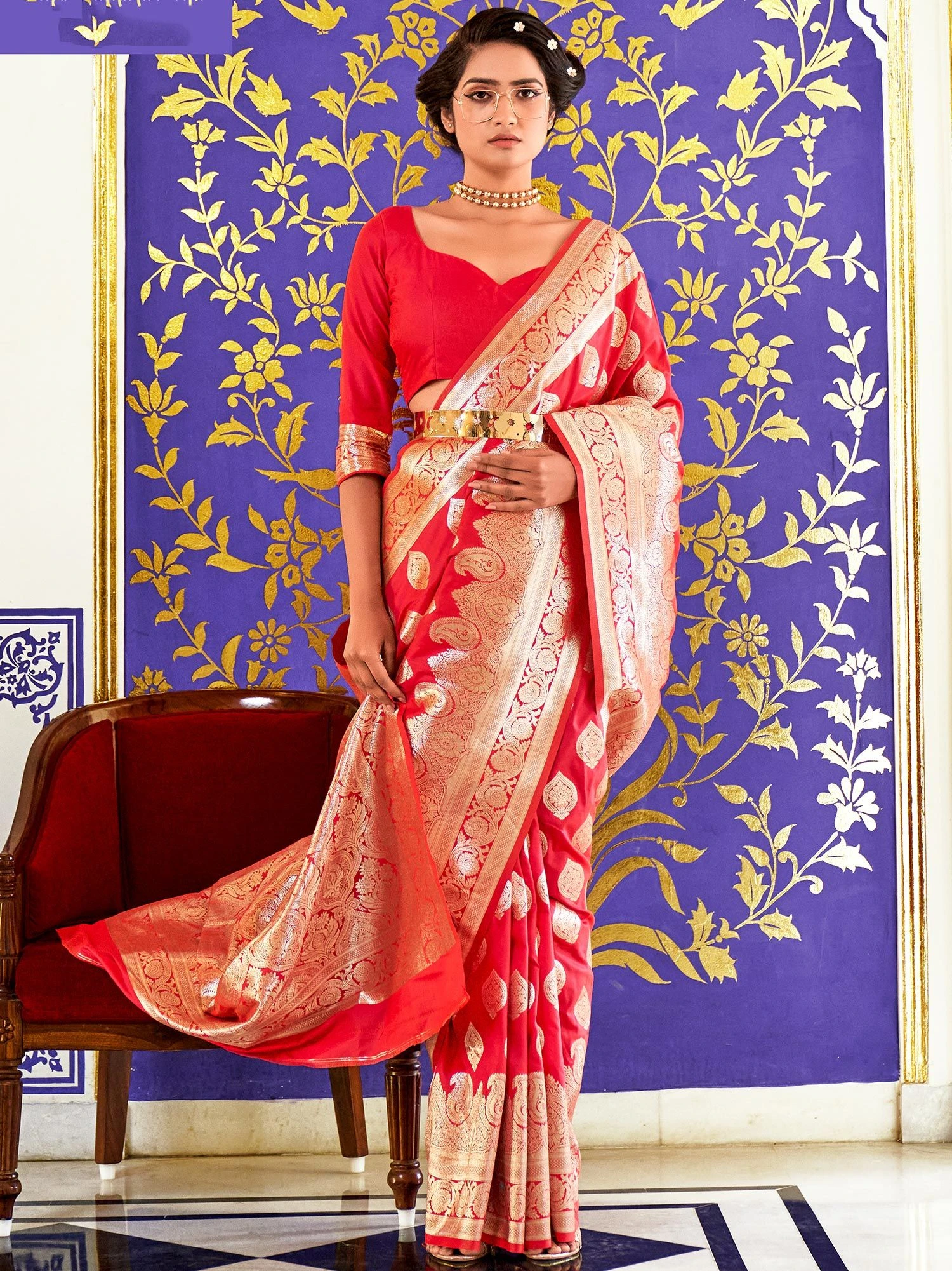 Steal the limelight adorning this beige color saree crafted in handloom silk. Crafted using printed with woven patterns, showcasing distinstive borders and pallu. Comes with a matching light brown color blouse in handloom silk. Note: The accessories featured are purely for fashion purposes. Due to photography reasons, some color variations may occur. The un-stitched blouse may be customized up to 42 inches.
