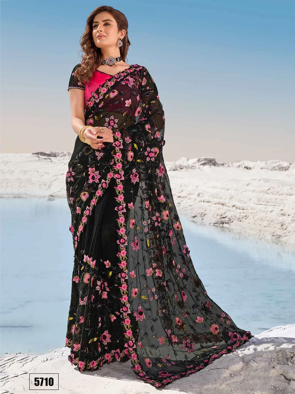 This Black Colour Net Fabric Saree is including the appealing glamorous displaying the sense of cute and graceful. The ethnic Zari,Embroidery,Moti work at the clothing adds a sign of attractiveness statement with your look.