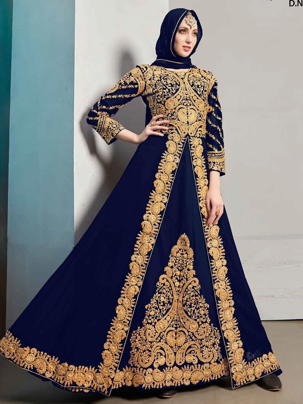 Design and style and trend could be on the peak of your splendor when you attire this Blue Colour Georgette Fabric Unstitched Salwar Kameez. The lovely Zari,Moti work a substantial attribute of this attire.