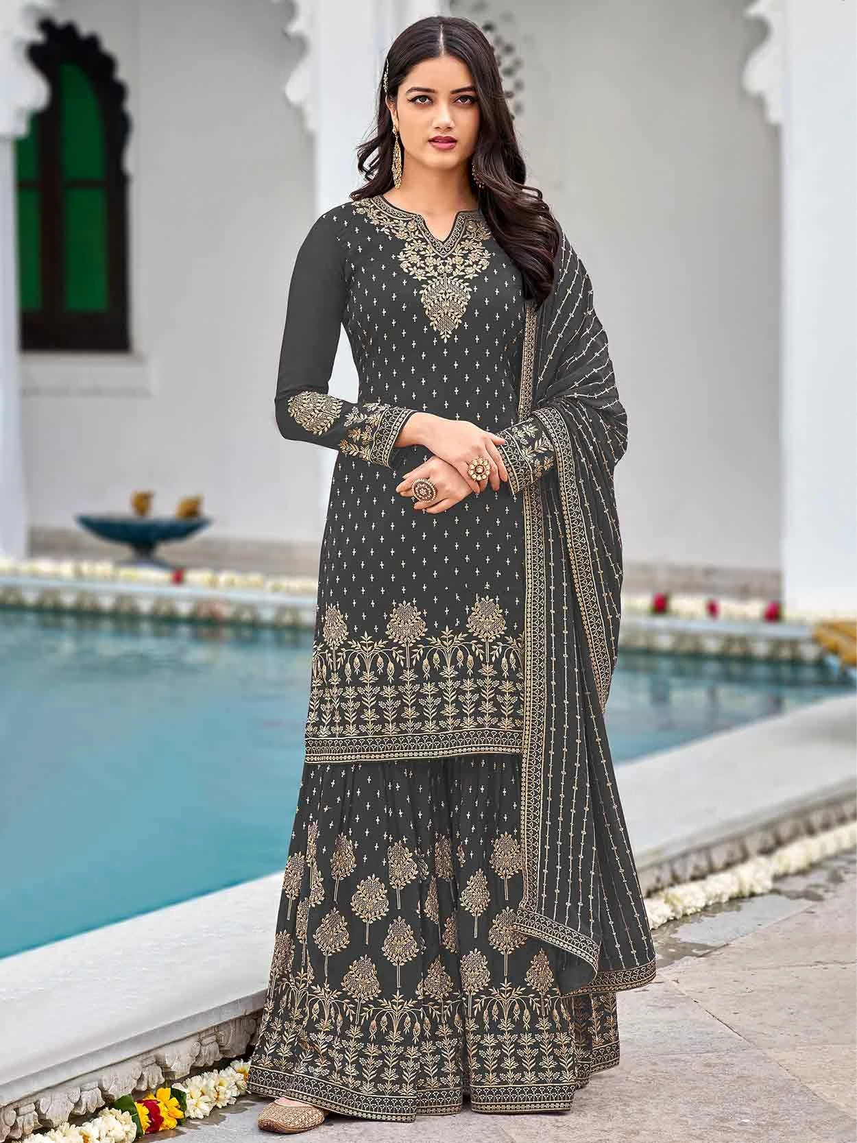 Blue Colour Georgette Fabric Gorgeous Salwar Kameez The lovely Zari,Thread work a substantial attribute of this attire.