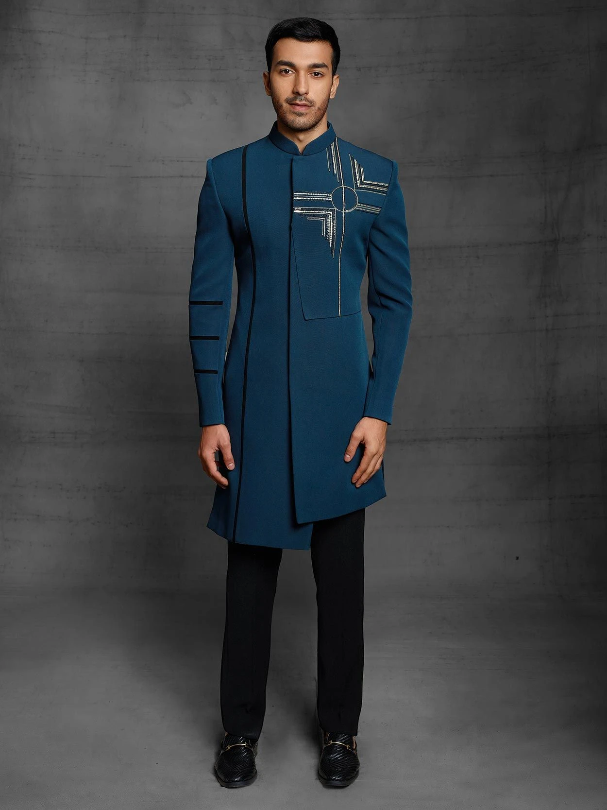 Design And Style And Trend Could Be On The Peak Of Your Elegance After You Dresses This Blue Colour Imported Fabric Men`S Indowestern With Thread,Hand Work.
