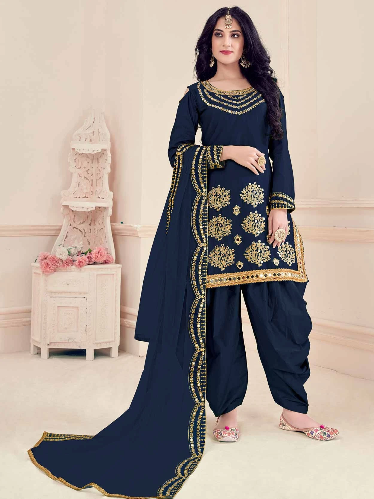Blue Colour Silk Fabric Amazing Salwar Kameez The lovely Zari,Mirror Work work a substantial attribute of this attire.
