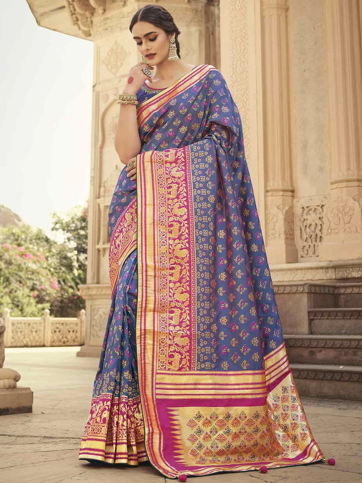 Make the heads flip as soon as you dress up with this pretty Blue Colour Silk Fabric Saree. The ethnic Zari,Weaving,Printed Work work at the clothing adds a sign of attractiveness statement with your look.