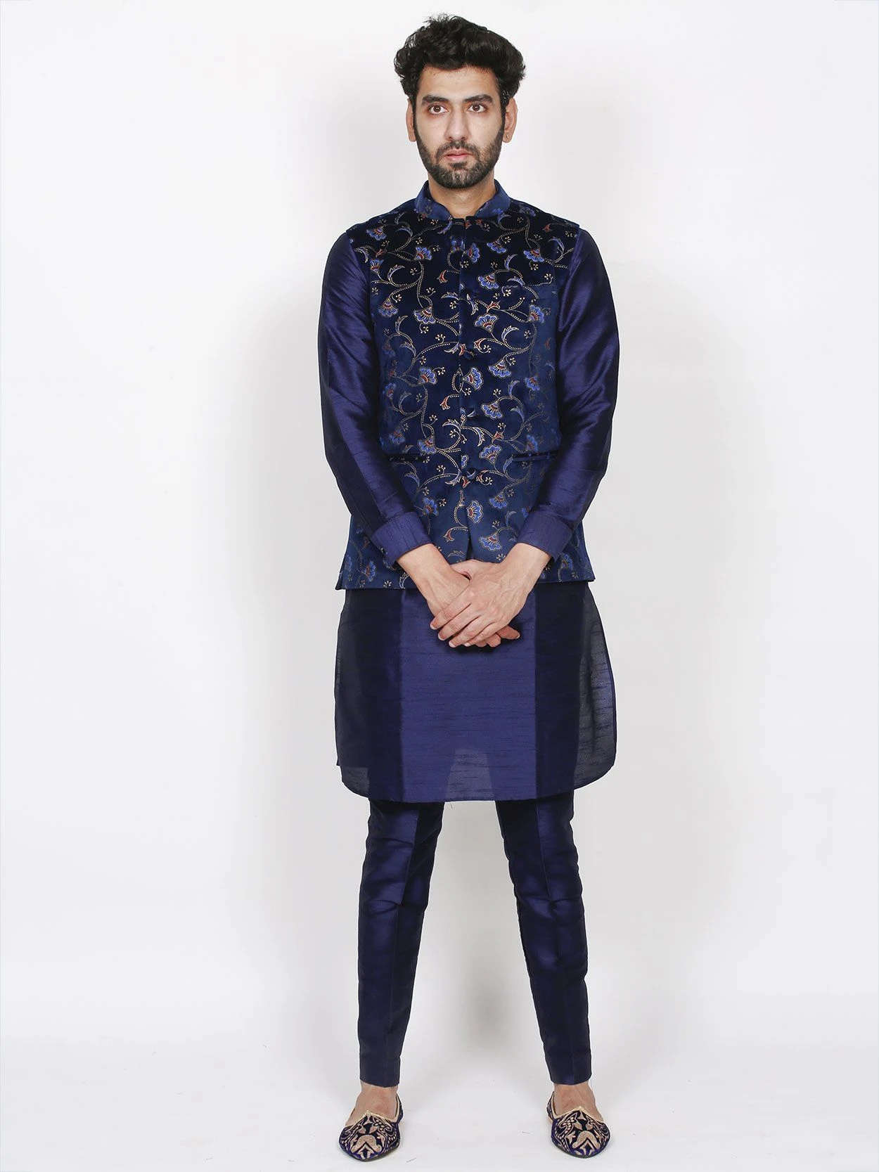 Grab all attention instantaneously in this Blue Colour Velvet,Silk Fabric Men’s Readymade Kurta Pajama Jacket.