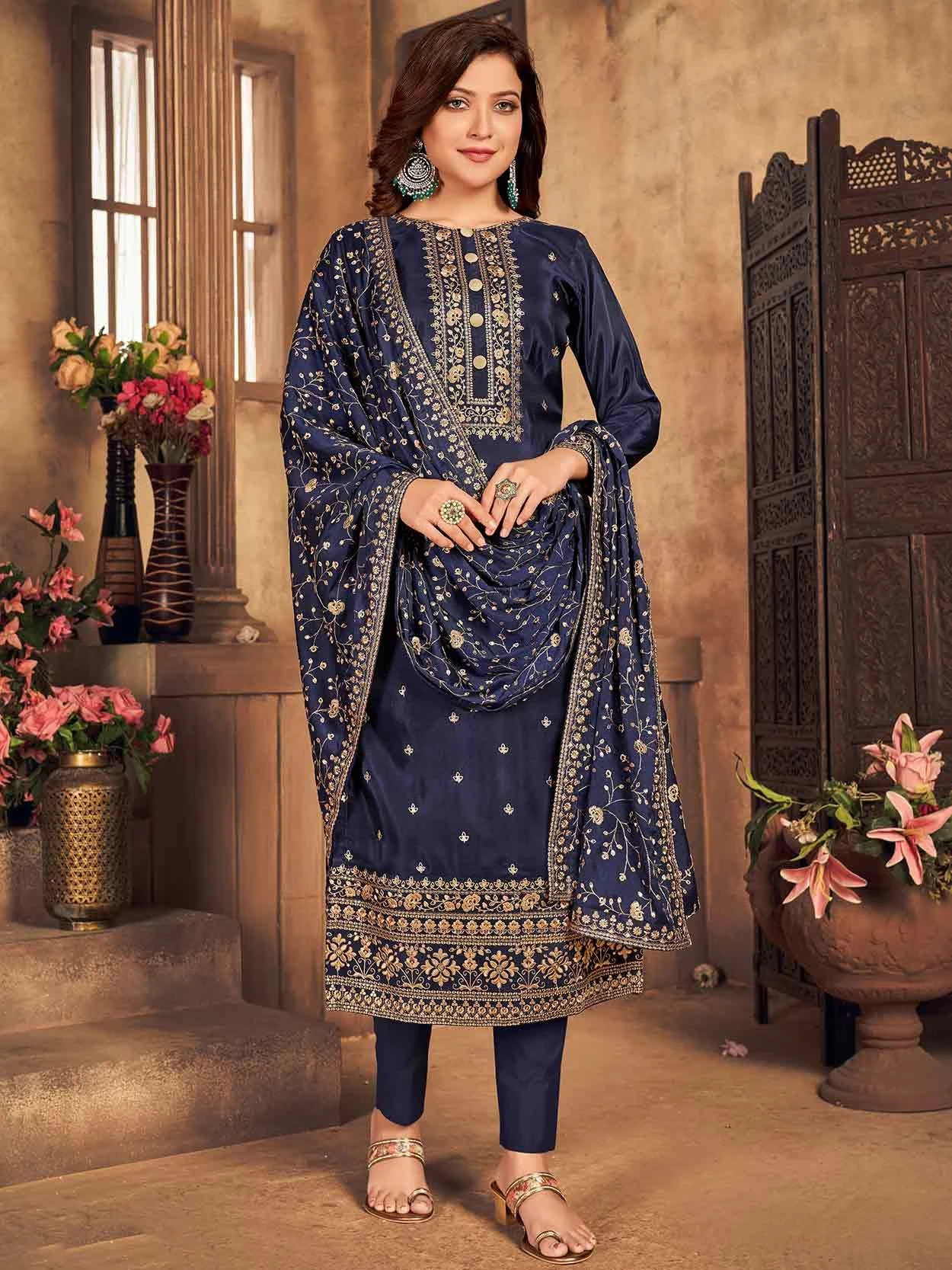 Genuine elegance comes out out of your dressing style with this Blue Colour Viscose Fabric Unstitched Salwar Kameez. The lovely Zari,Sequin work a substantial attribute of this attire.