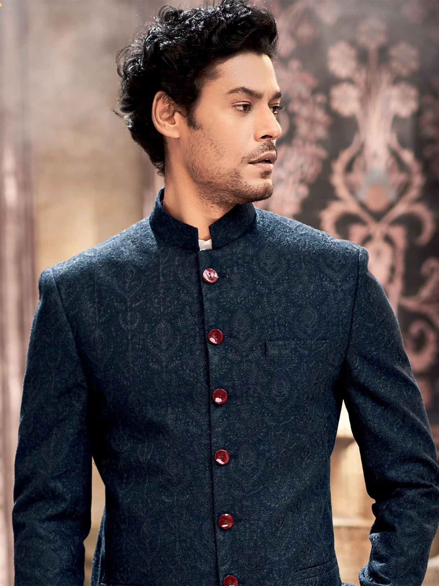 Mark your appearance as you walk wearing this peacock blue color jodhpuri suit made in silk. Decorated with a embroidered work and buttoned up front. Teamed with a matching blue trousers in silk. Note: Some color variations may occur owing to photography causes. Up to 1 inch of measurement fluctuation is possible.