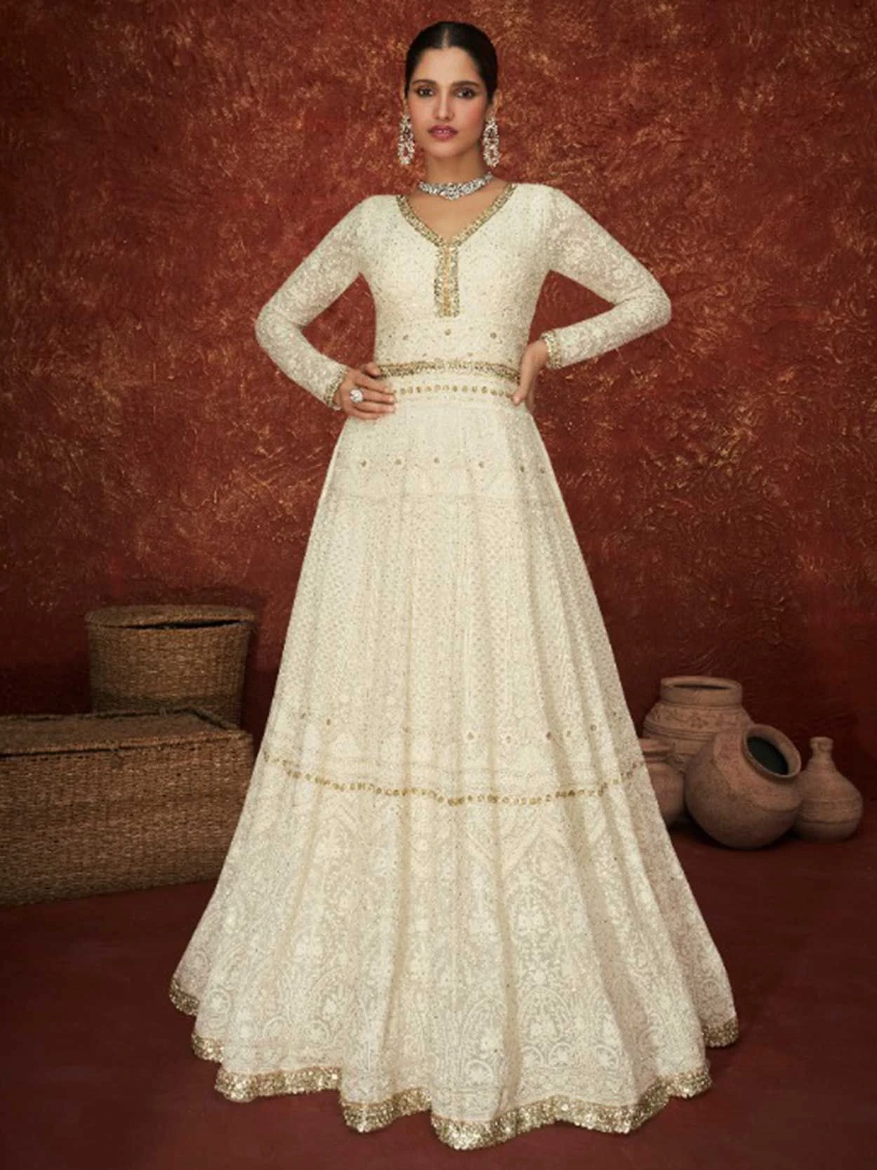 Design and pattern would be at the peak of your magnificence the moment you attire this Cream Colour Georgette Fabric Semi Stitched Salwar Kameez. The lovely Zari,Thread,Sequin Work work a substantial attribute of this attire.