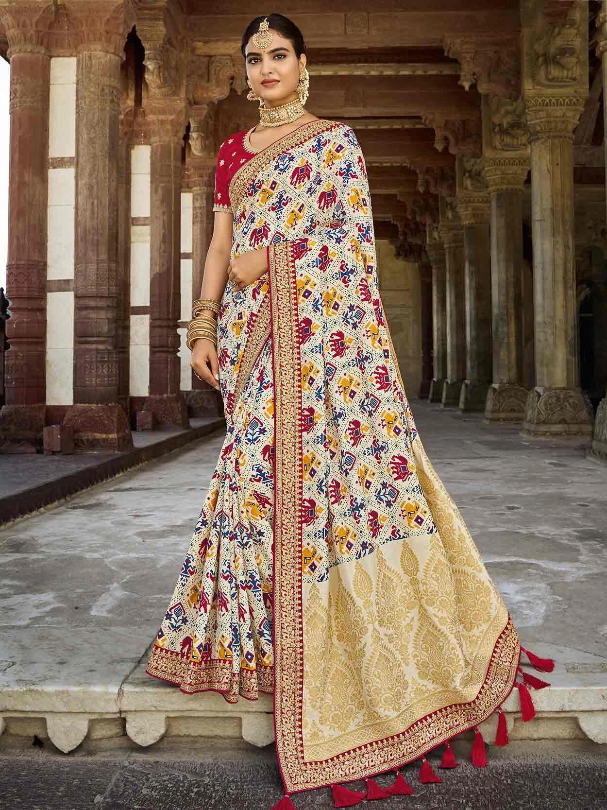 An fantastic Cream Colour Raw Silk Fabric Saree will make you appear incredibly stylish and graceful. The ethnic Zari,Embroidery,Hand work at the clothing adds a sign of attractiveness statement with your look.