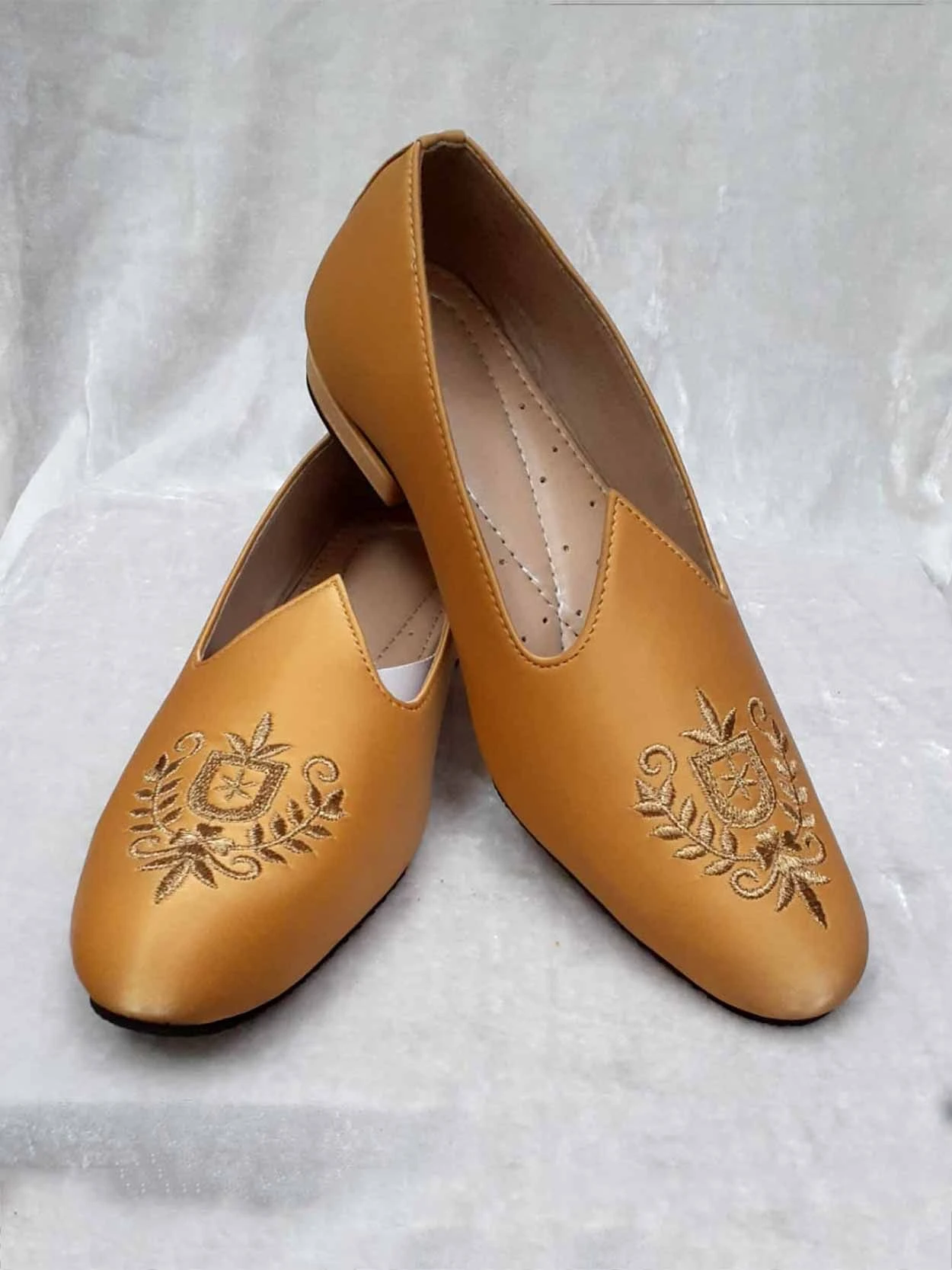 Dark Golden Colour Leather Rexin Mojari For Groom.