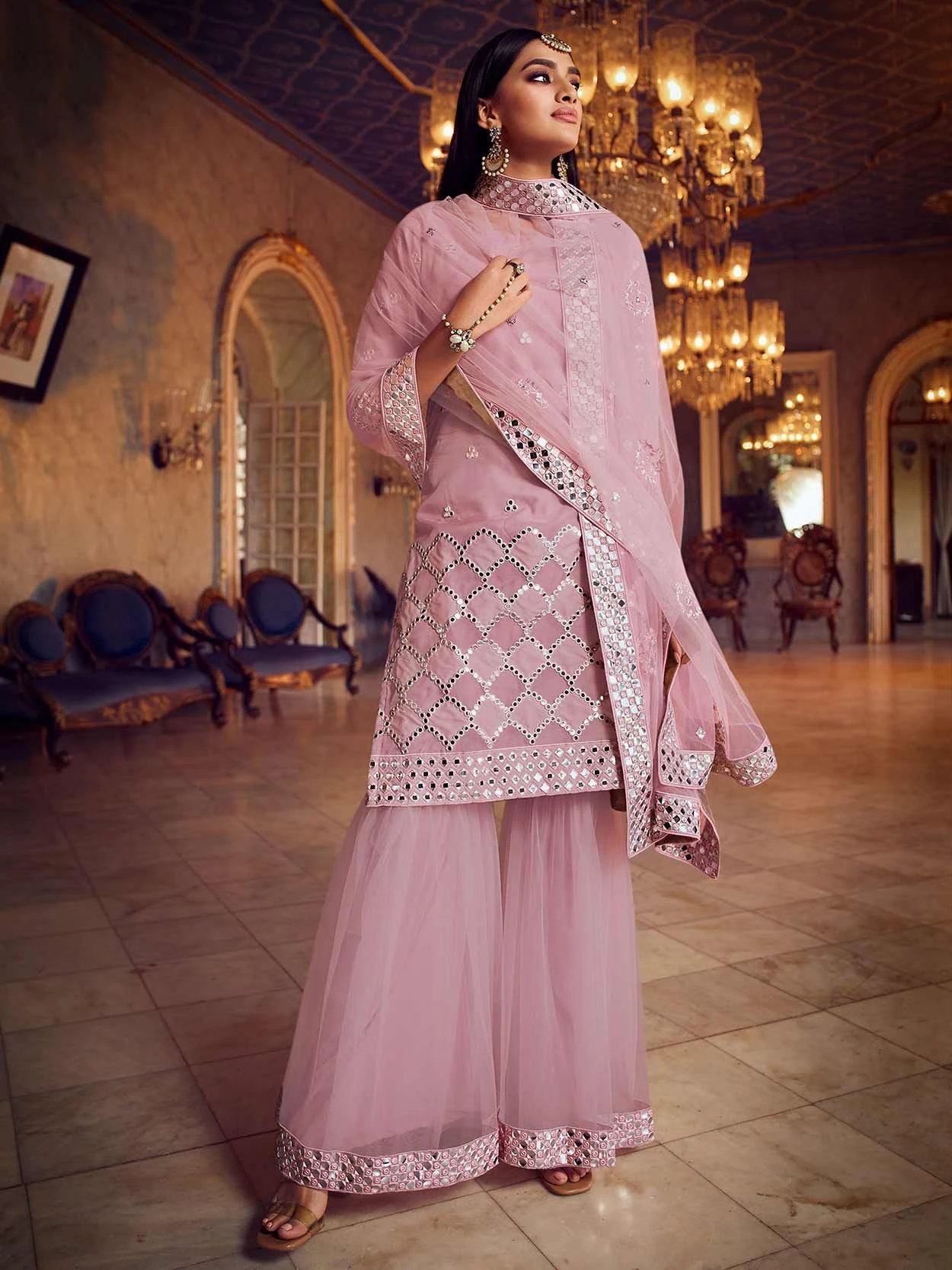 An remarkable Baby Pink Colour Organza Fabric Semi Stiched Salwar Kameez will make you look quite stylish and graceful. The lovely Thread,Mirror work a substantial attribute of this attire.