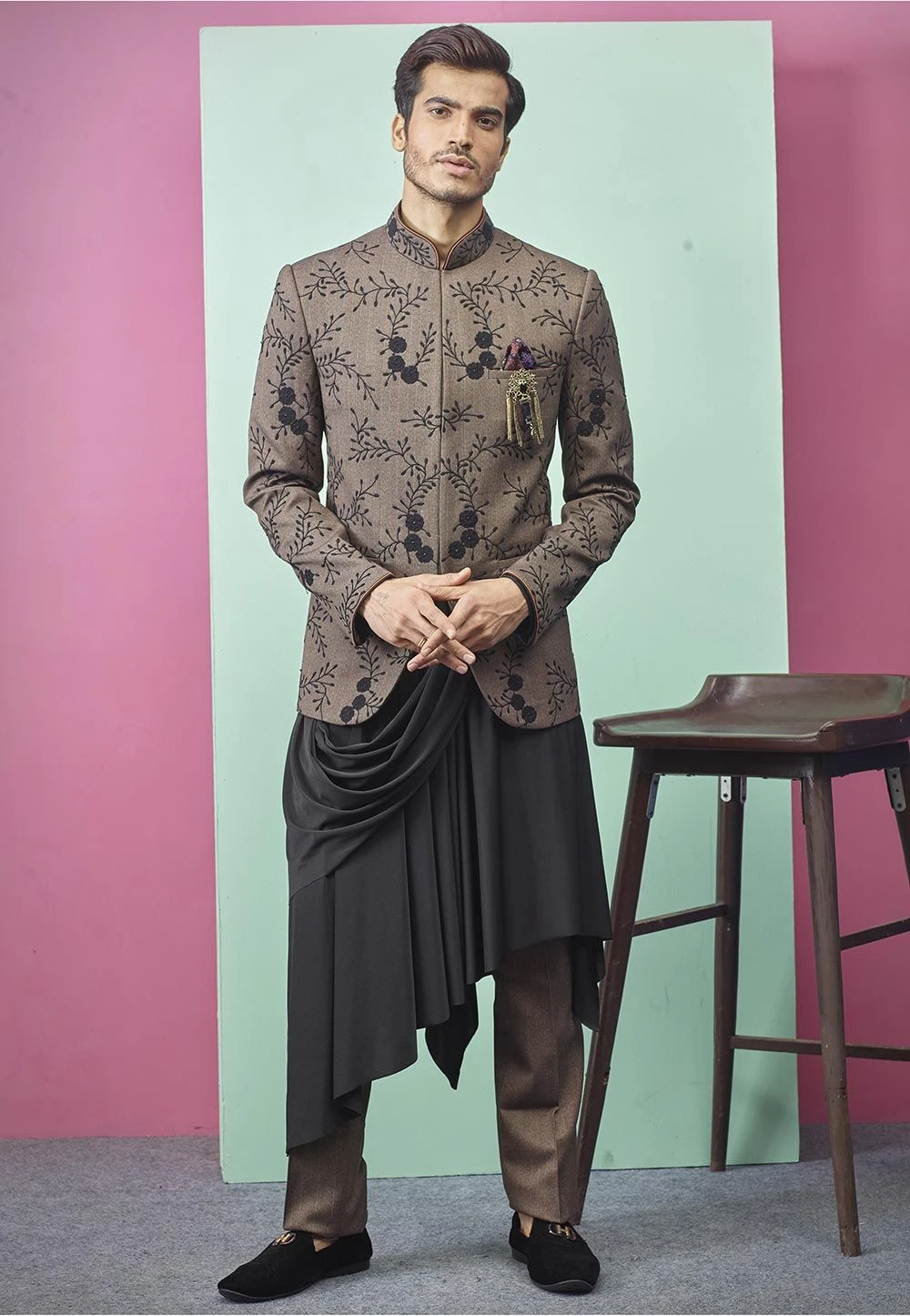 Imported Fabric Brown Colour Engagement Jodhpuri Suit With Thread,Zari Work.