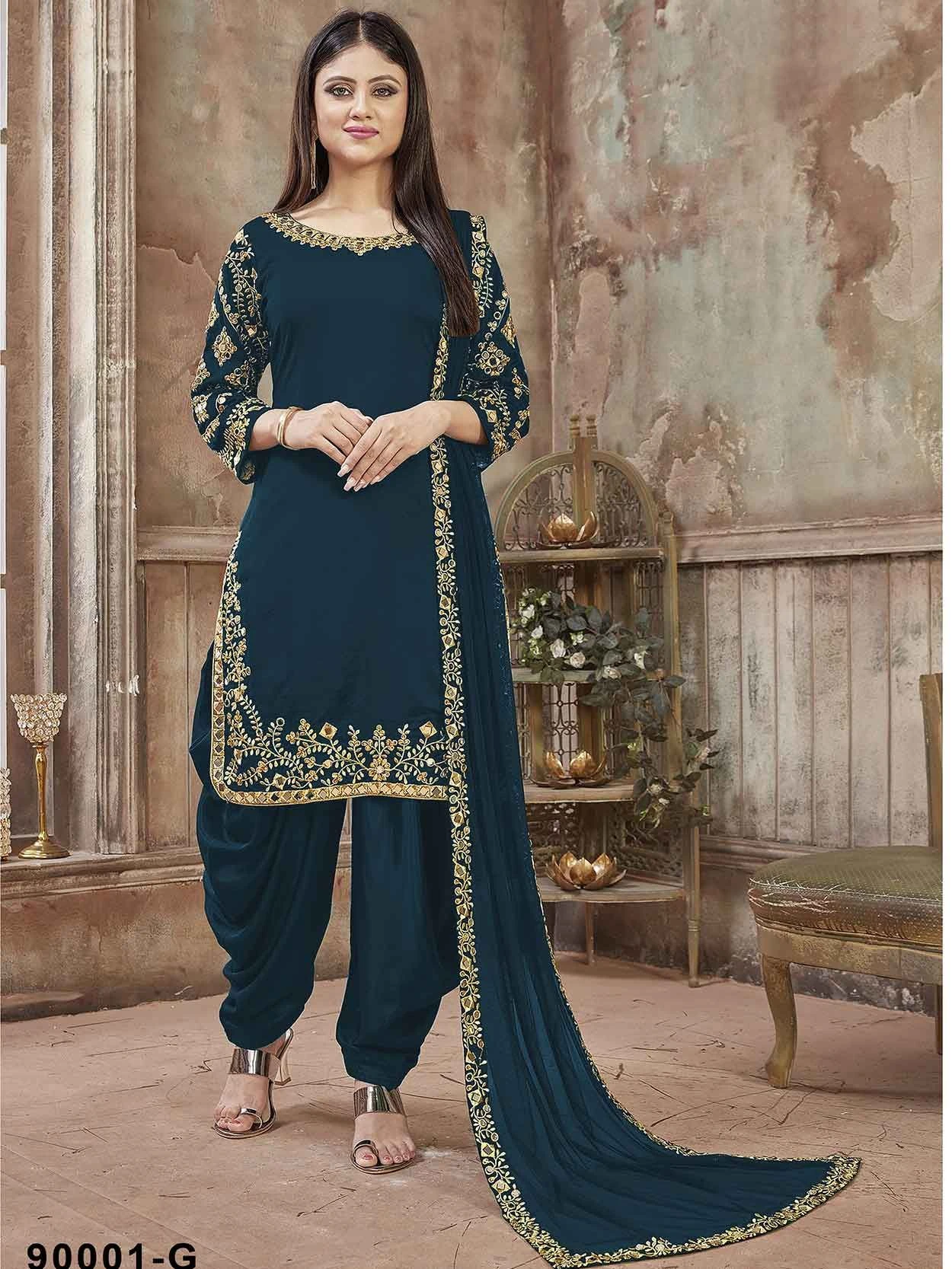 Perfect craftmanship of embellishments exhibited in this Blue Colour Georgette Fabric Unstitched Salwar Kameez. The lovely Zari,Mirror Work work a substantial attribute of this attire.