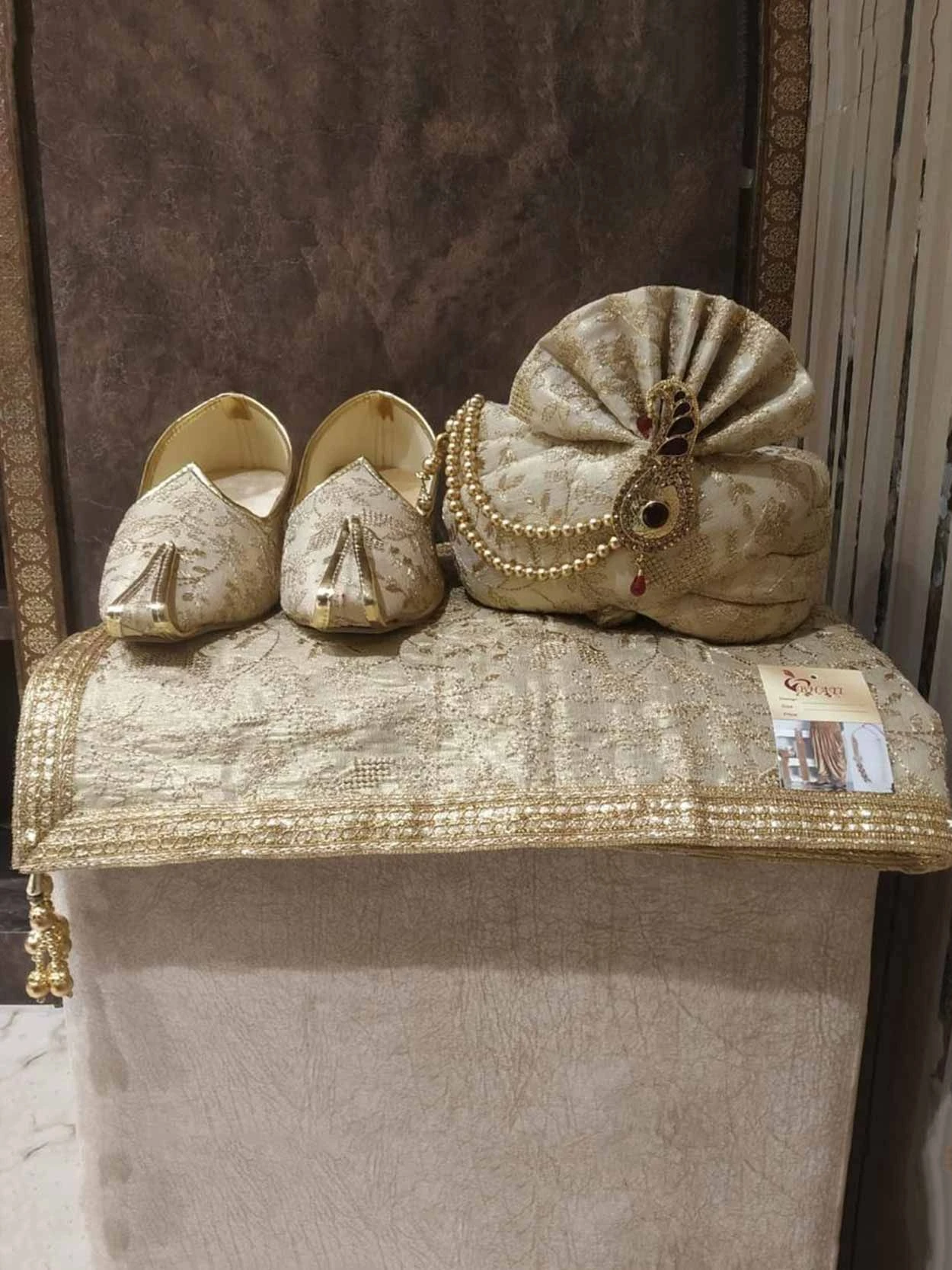 Golden Colour Silk Fabric Indian Wedding Turban.