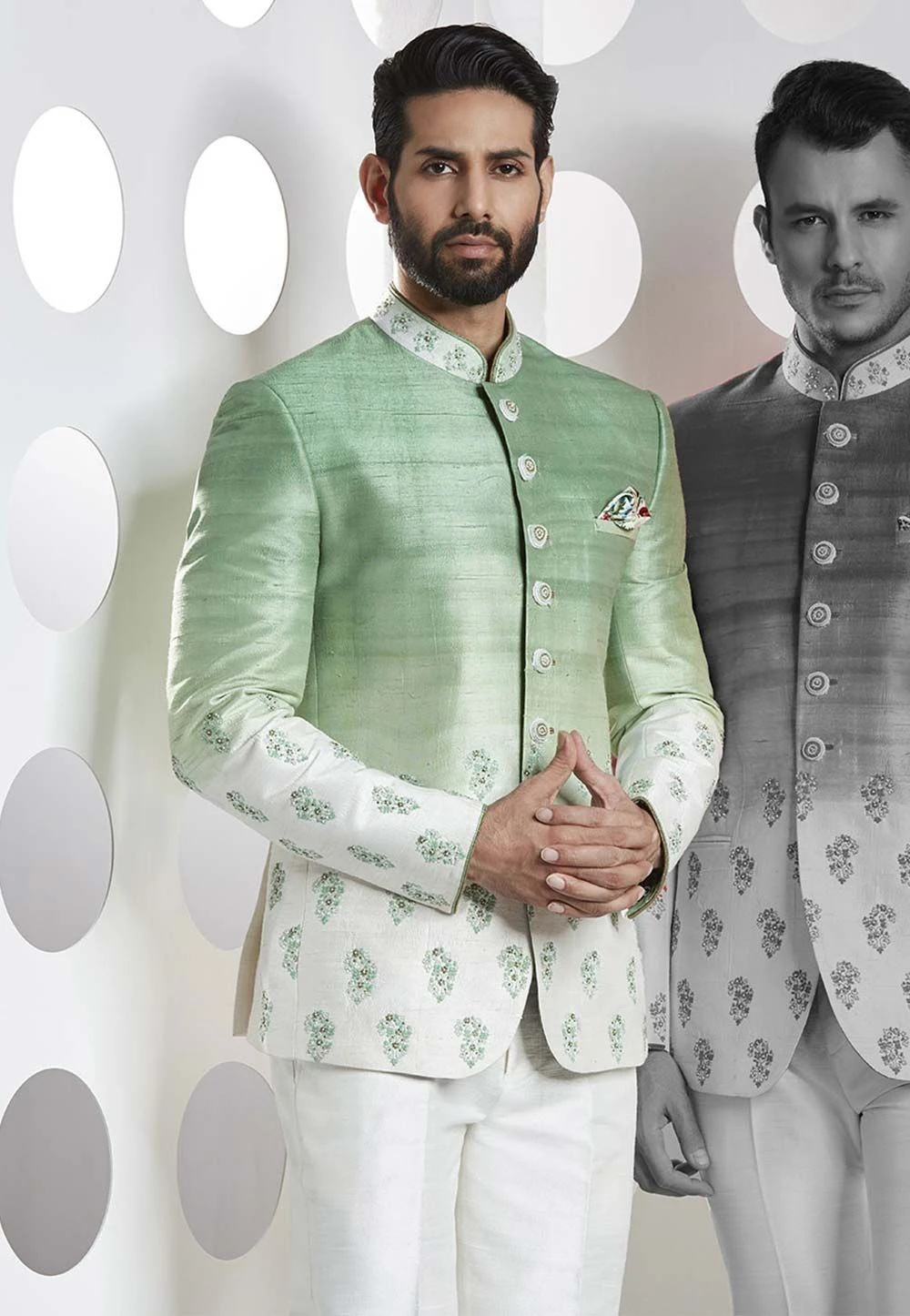 Elegant Looking Green Color Silk Designer Jodhpuri Suit With Embroidery Work.