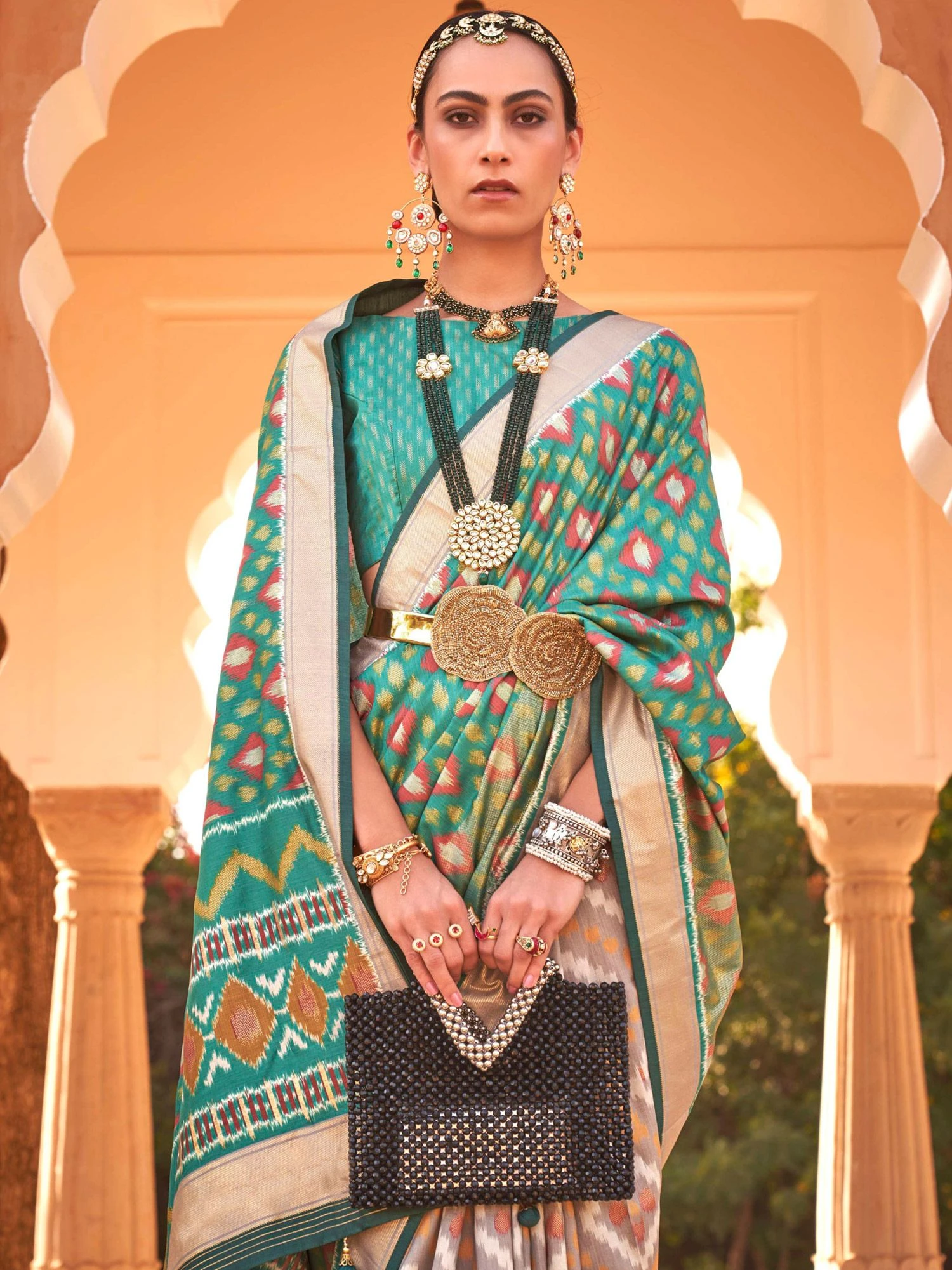 Steal the scene adorning this primal green color saree fabricated in art silk. Designed using printed patterns, showcasing distinstive borders and tasseled pallu. Teamed with a matching primal green color blouse in art silk. Note: The accessories featured are purely for fashion purposes. Due to photography reasons, some color variations may occur. The un-stitched blouse may be customized up to 42 inches.