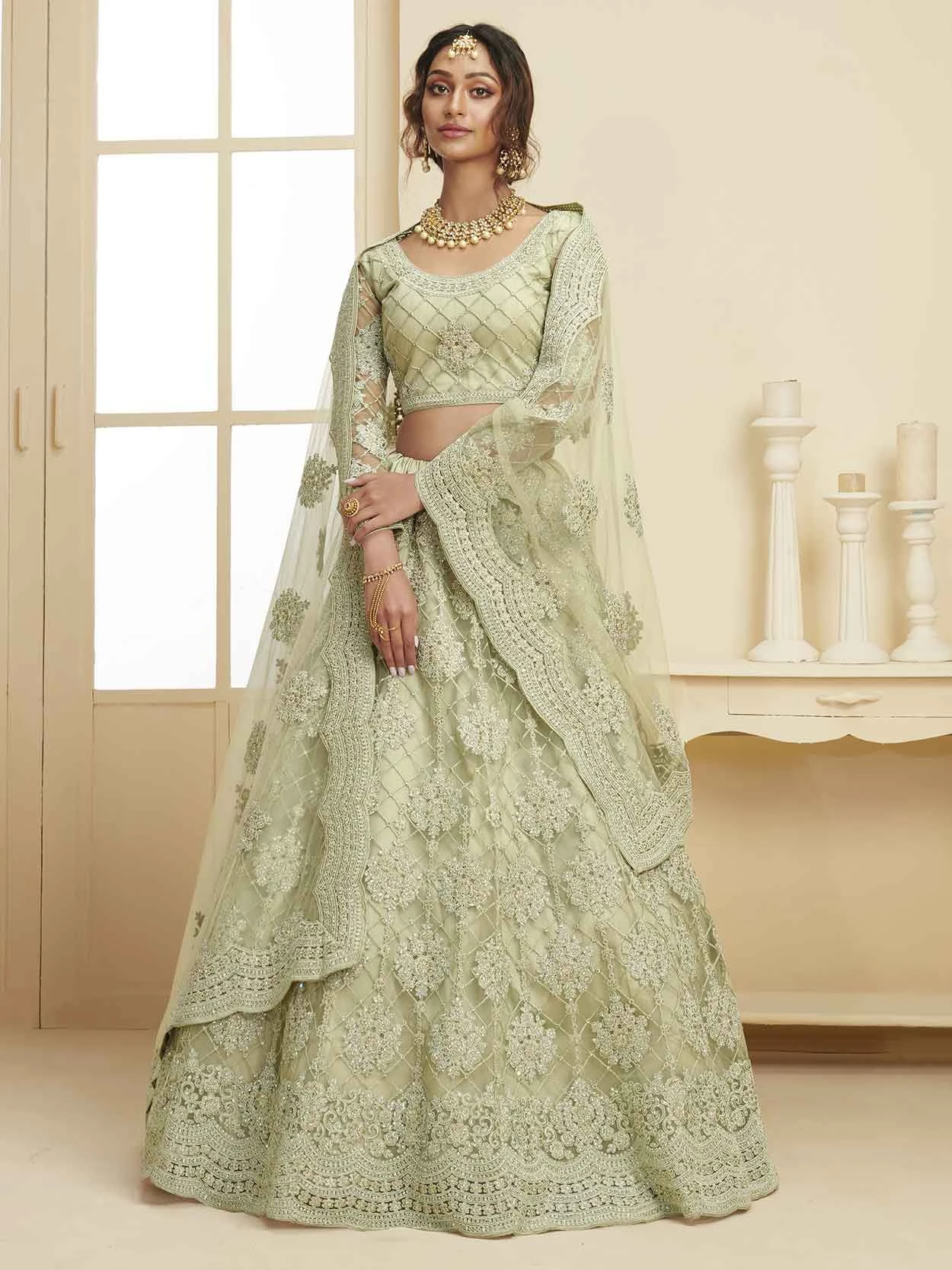 Astounding Circular Lehenga Style in Green Colour Net Fabric This attire is nicely made with Embroidery,Stone work.