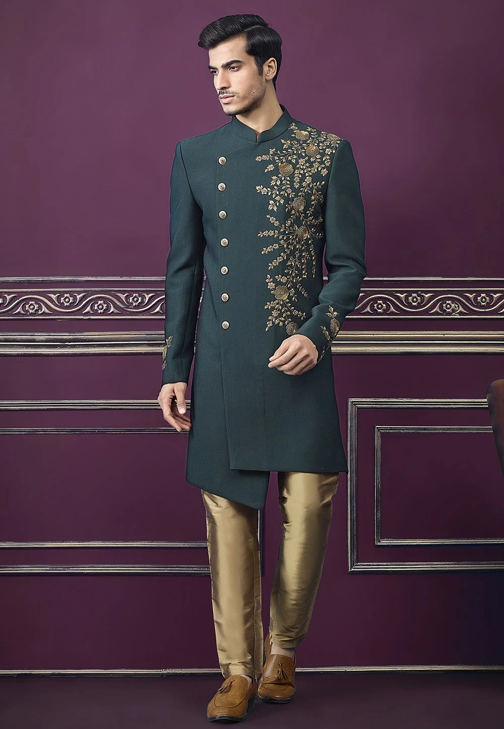 Exclusive Green Colour Imported Fabric Men’s Indowestern With Matching Pajama & Zari,Thread Work.