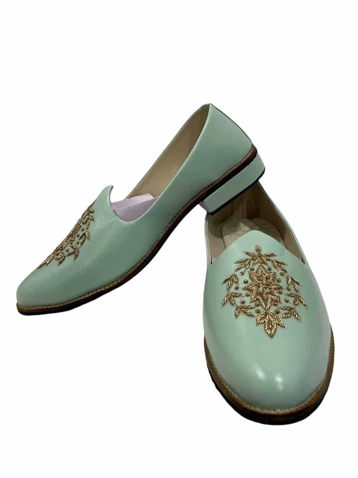 Green Colour Mens Wedding Shoes in Leather Fabric.