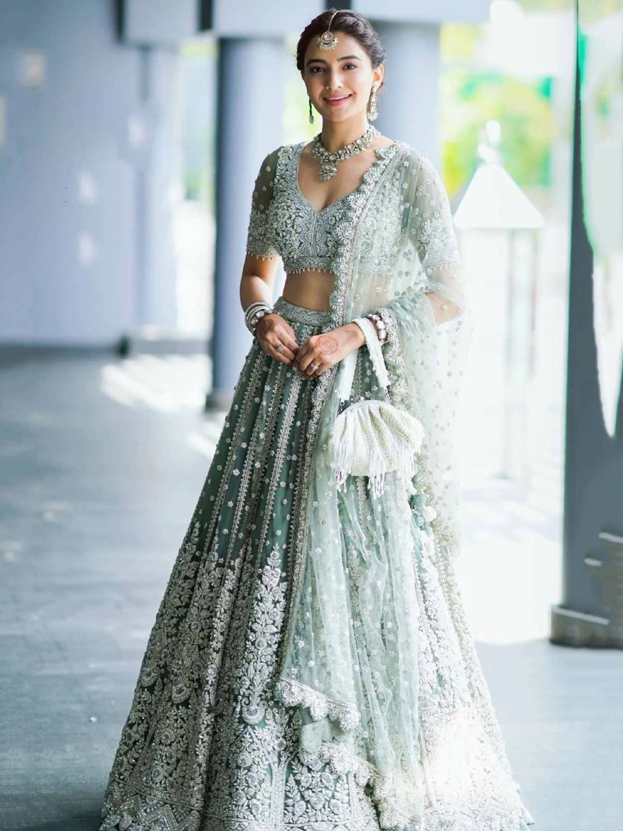 Green Colour Butterfly net Fabric Wonderful Semi Stitched Lehenga Choli This attire is nicely made with Embroidery,Stone work.