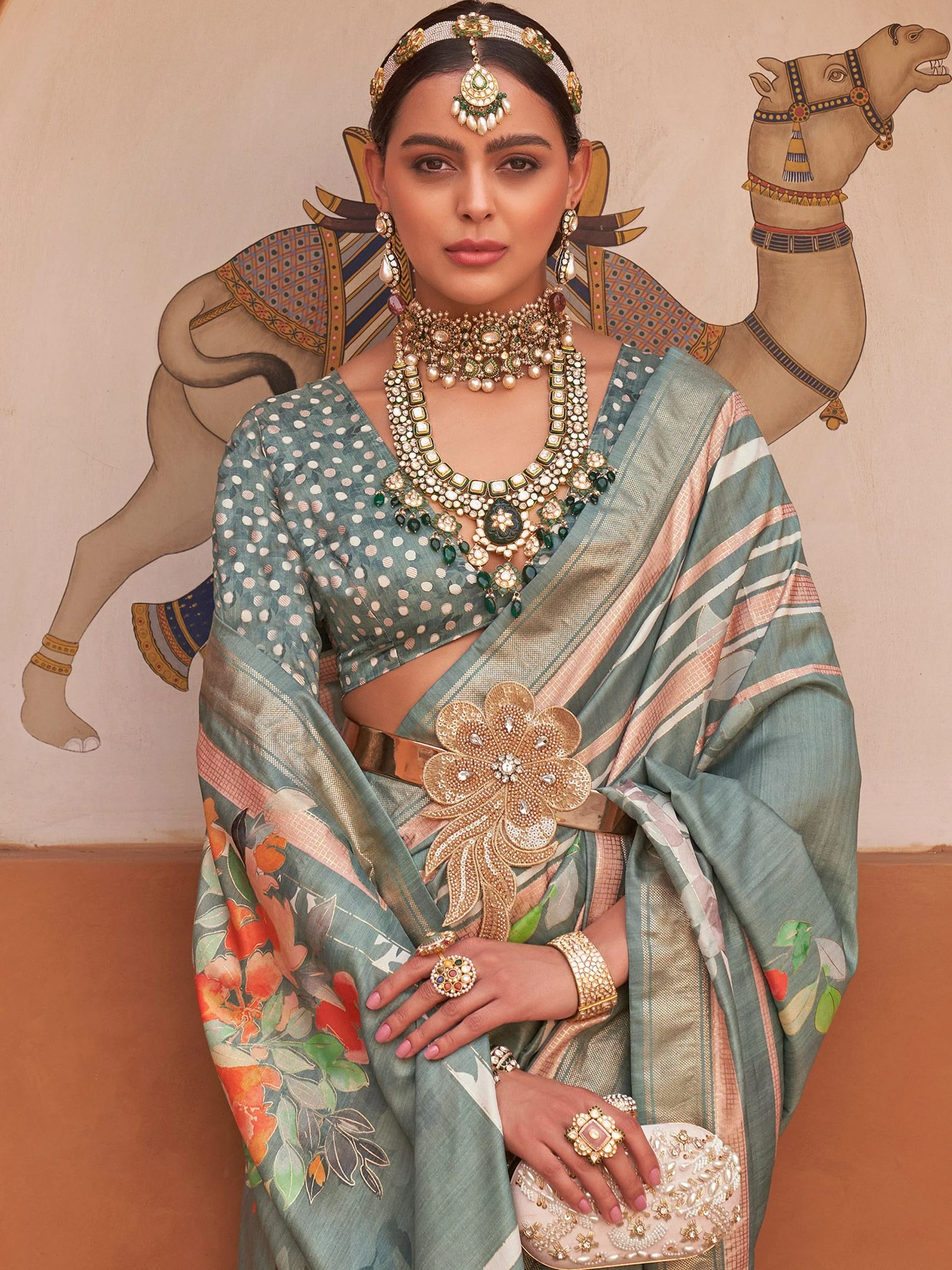 Elegance and beauty come together with this slate grey color saree made in silk. Decorated using floral printed patterns, showcasing distinstive borders and pallu. Paired with a matching grey color blouse in silk. Note: The accessories featured are purely for fashion purposes. Due to photography reasons, some color variations may occur. The un-stitched blouse may be customized up to 42 inches.