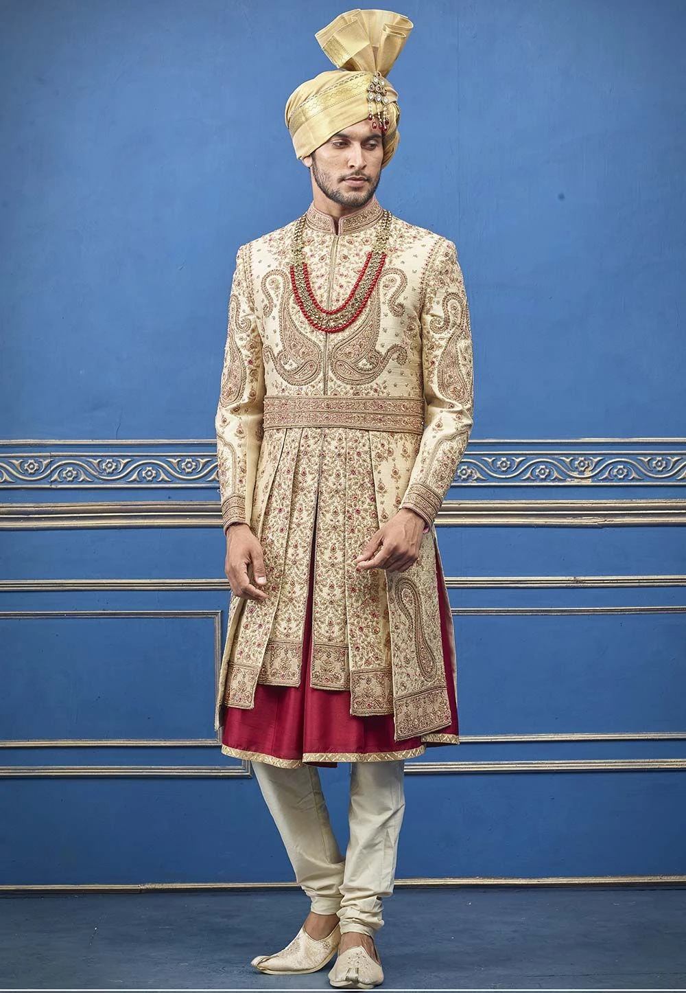 Grab all attention instantaneously in this Golden Colour Silk Fabric Designer Sherwani.