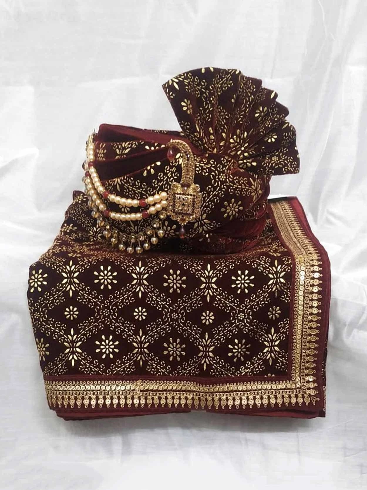 Maroon Colour Velvet Fabric Designer Groom Turban.