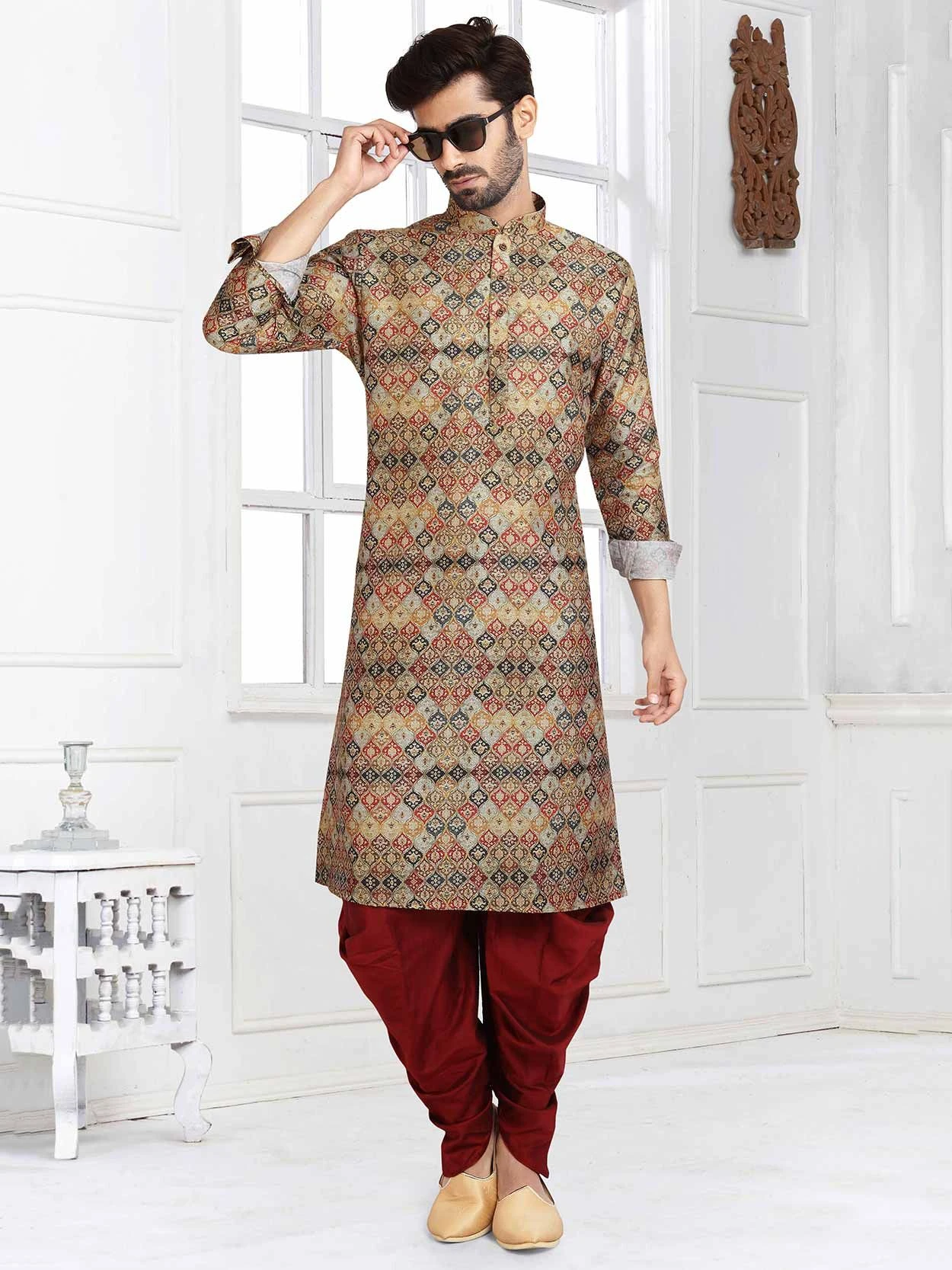 Look trendy yet traditionally enticing with this Multiple Colour Banarasi Silk Fabric Readymade Kurta Pajama. Garment features elaborate Readymade Kurta decorated with different patterns.