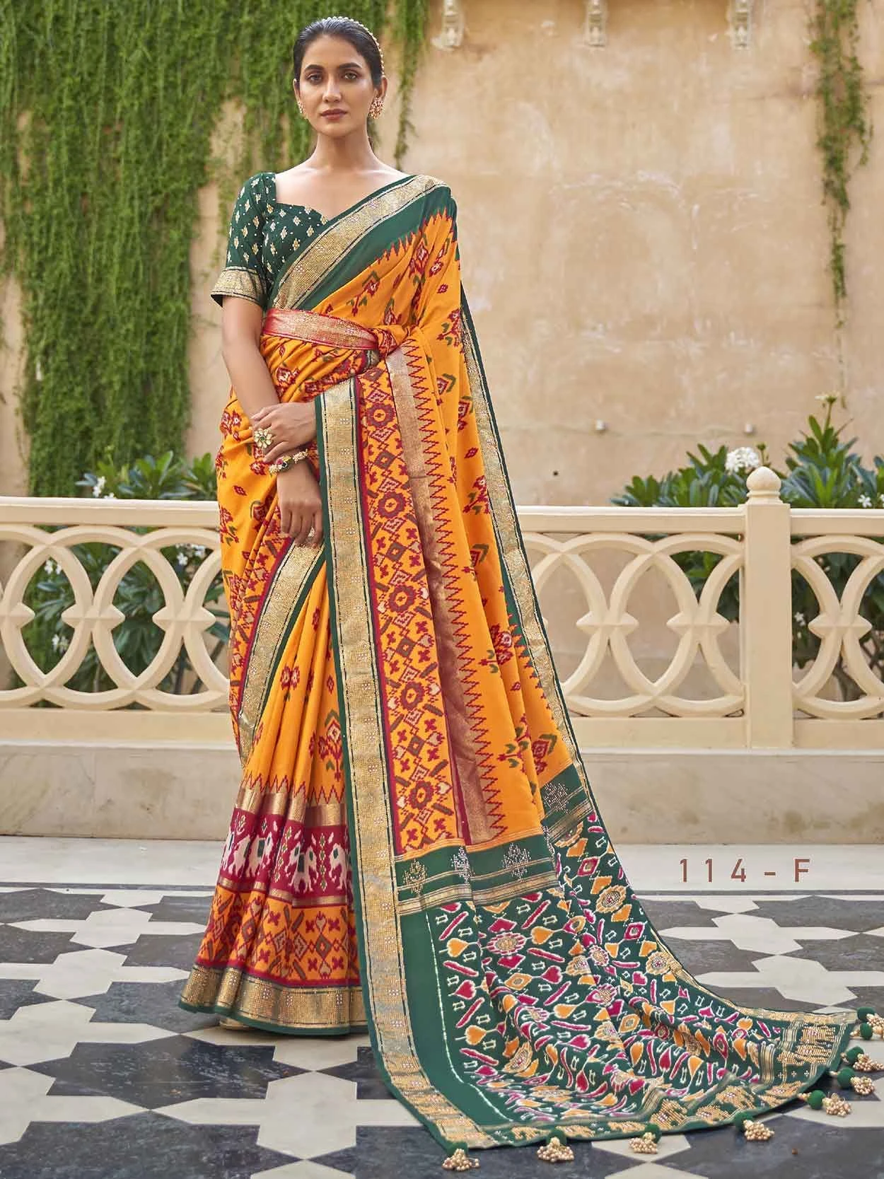 Be the sunshine of everybody’s eyes dressed with this gorgeous Mustard Yellow Colour Patola Silk Fabric Saree. The ethnic Printed,Weaving work at the clothing adds a sign of attractiveness statement with your look.