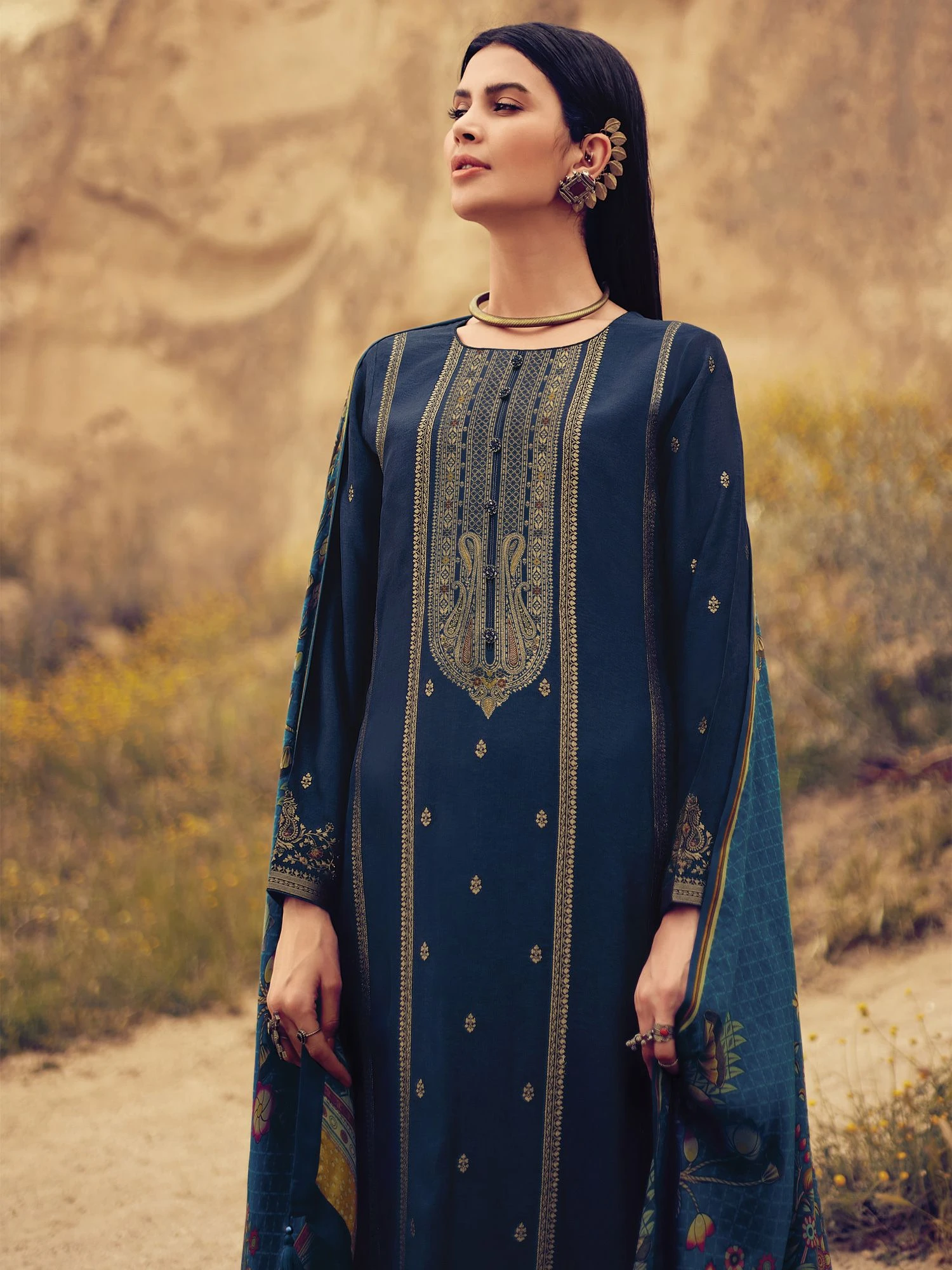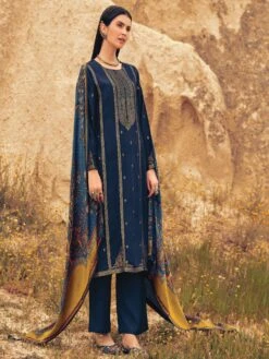 Cherish Your look with this royal blue color straight cut kameez in silk. Augmented using printed and silk woven work. Assigned with a printed dupatta in silk and a palazzo style bottom, both made in blue color. Note: Accessories shown are for styling purpose only. Slight color variation may occur due to photographic reasons. The semi-stitched kameez can be customised upto 42 inches.