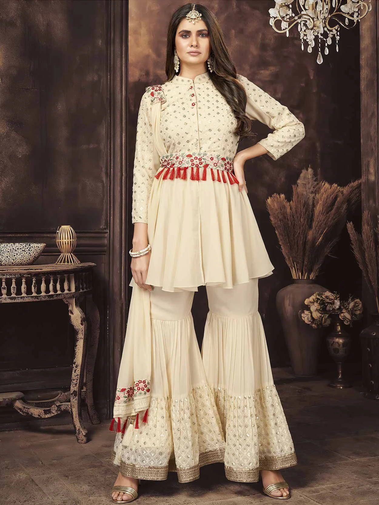 Appear ethnic in this sort of a affluent Off White Colour Georgette Fabric Readymade Salwar Kameez. Beautified & stylized with Thread,Sequin,Embroidery work to give you an attractive look.