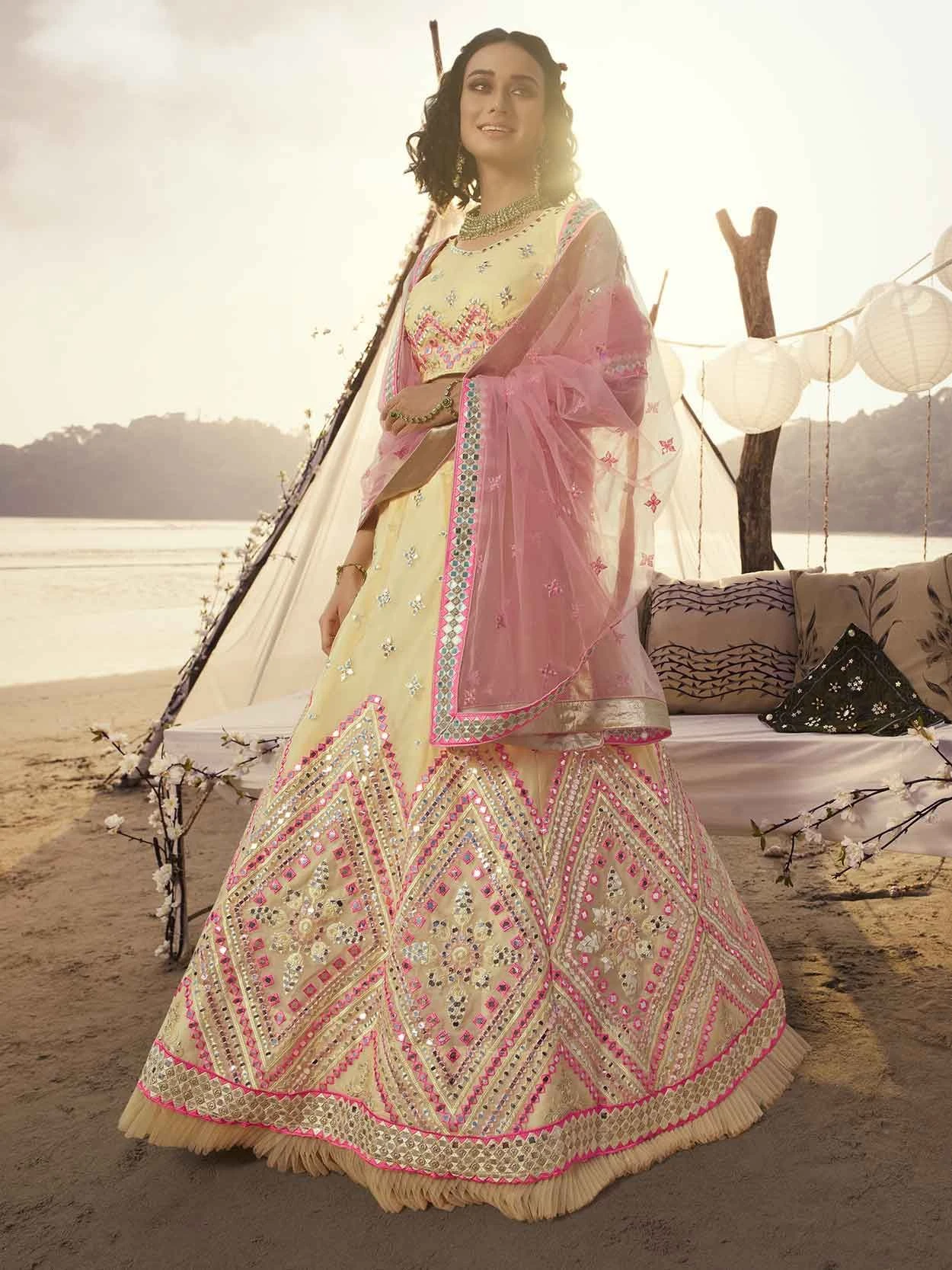 Incredible A Line Lehenga Style in Off White Colour Organza Fabric In Traditional Look This attire is nicely made with Thread,Mirror work.
