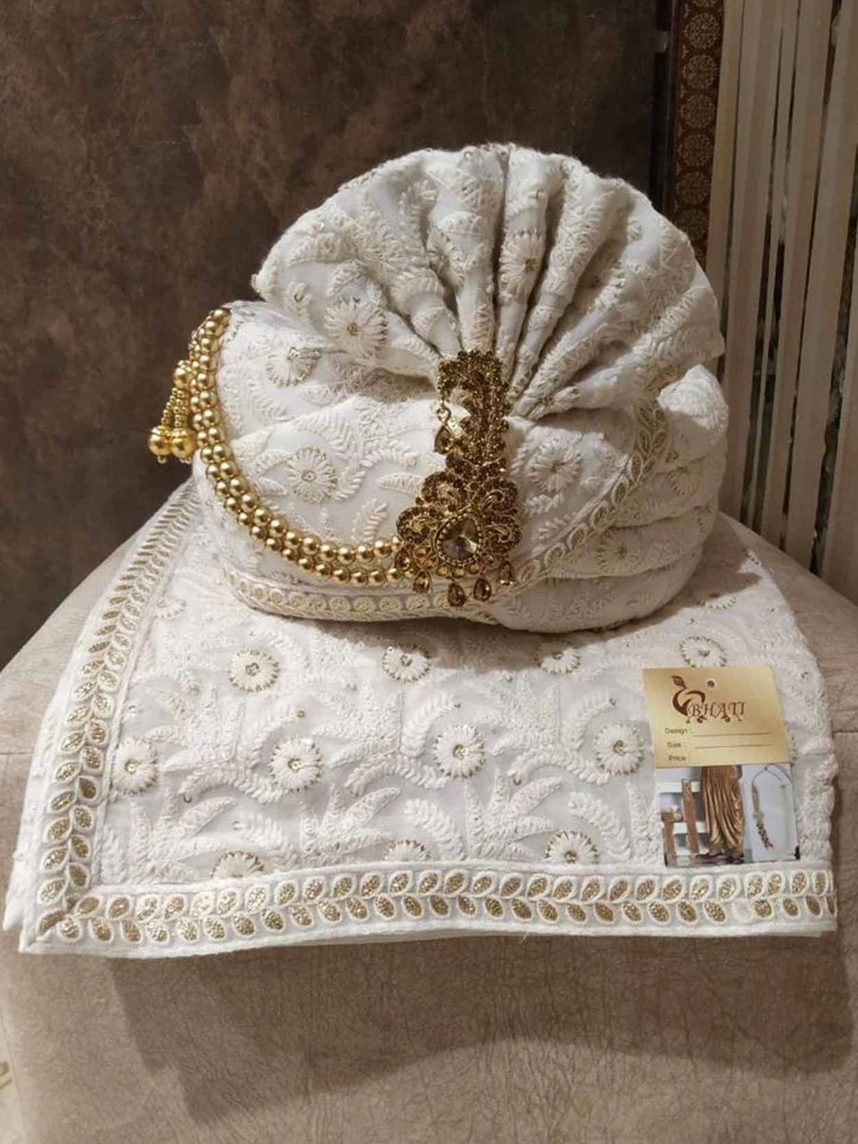 Off White Colour Lucknowi,Silk Fabric Indian Wedding Turban.