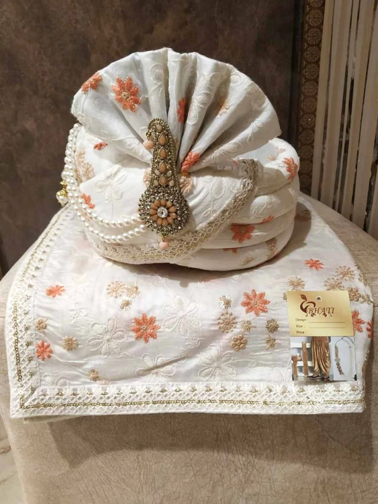 Off White Colour Silk Fabric Mens Wedding Turban.