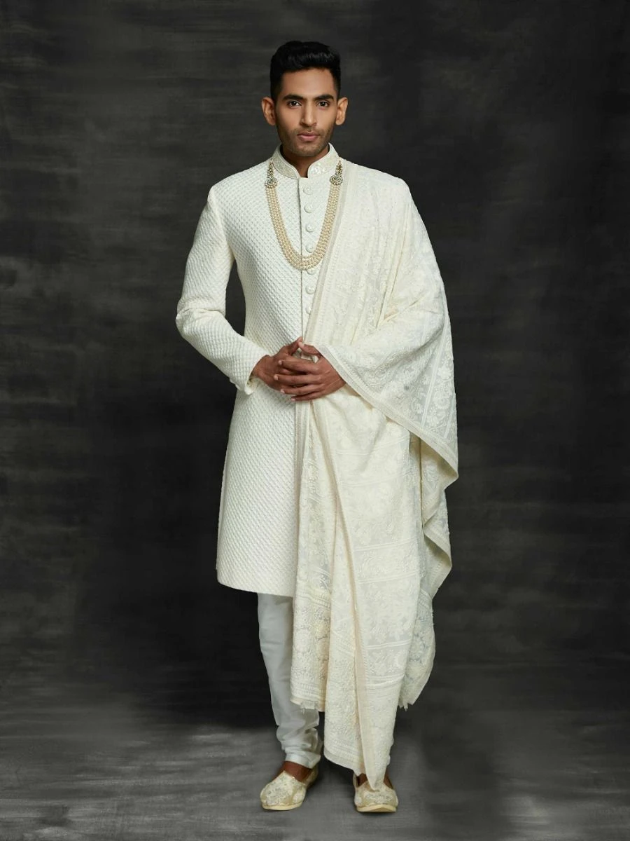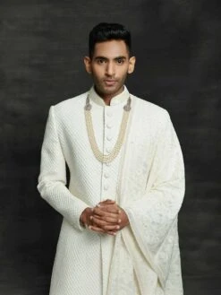 Royal Look Off White Colour Silk Fabric Groom Sherwani in Thread,Embroidery,Hand Work.