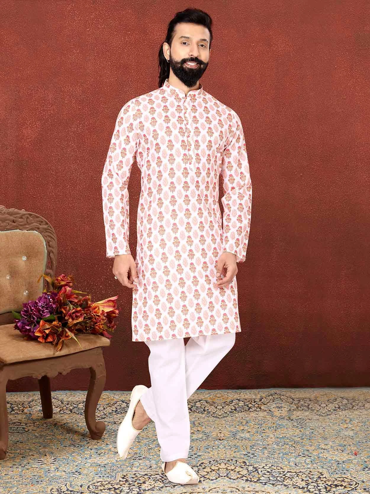 Make heads turn dressed with this fabulous Off White,Pink Colour Cotton Fabric Readymade Kurta Pajama. Garment features elaborate Readymade Kurta decorated with Digital Print Work.