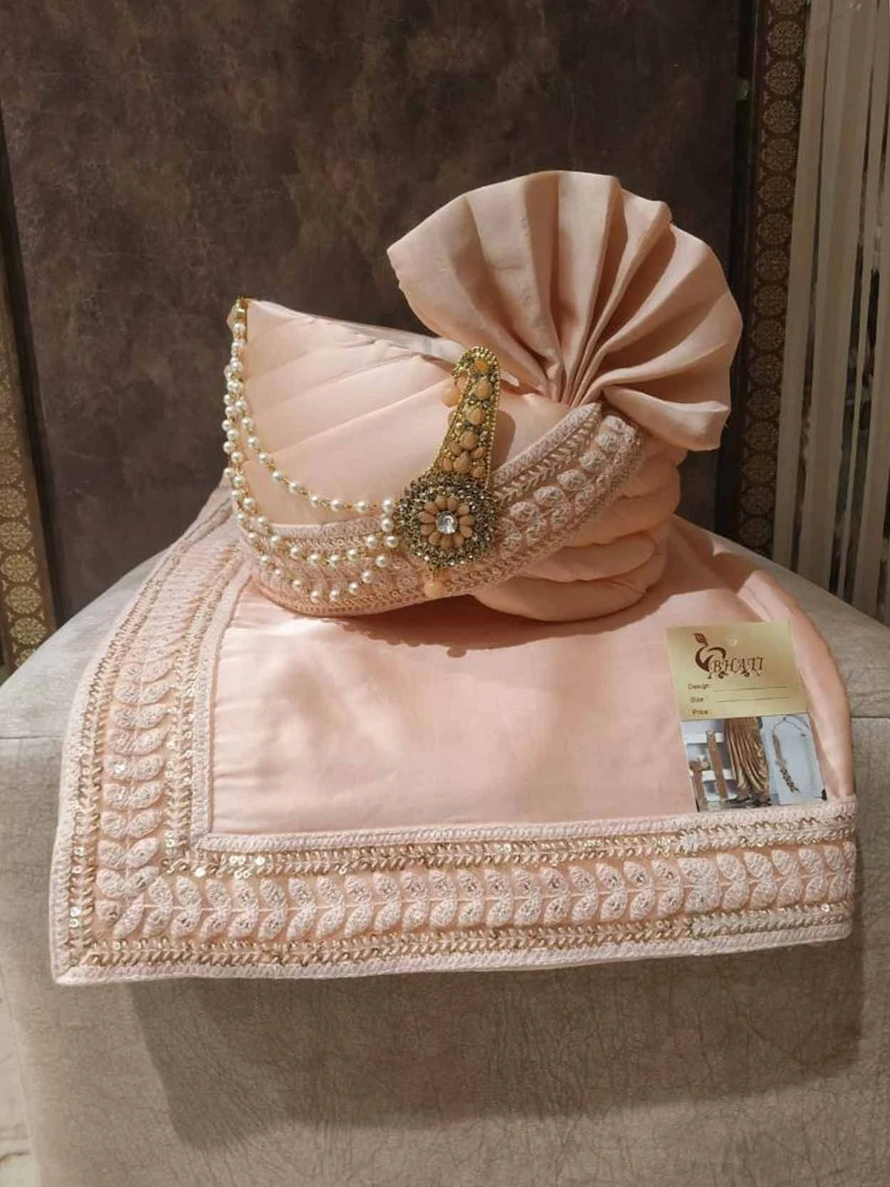 Peach Colour Silk Fabric Mens’ Groom Turban.