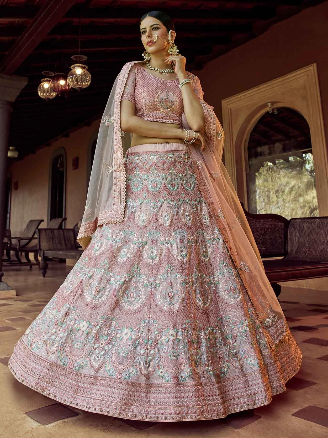 Peach Colour Georgette Fabric Lovely A Line Lehenga Choli In Bridal Look This attire is nicely made with Sequin,Resham,Zari work.