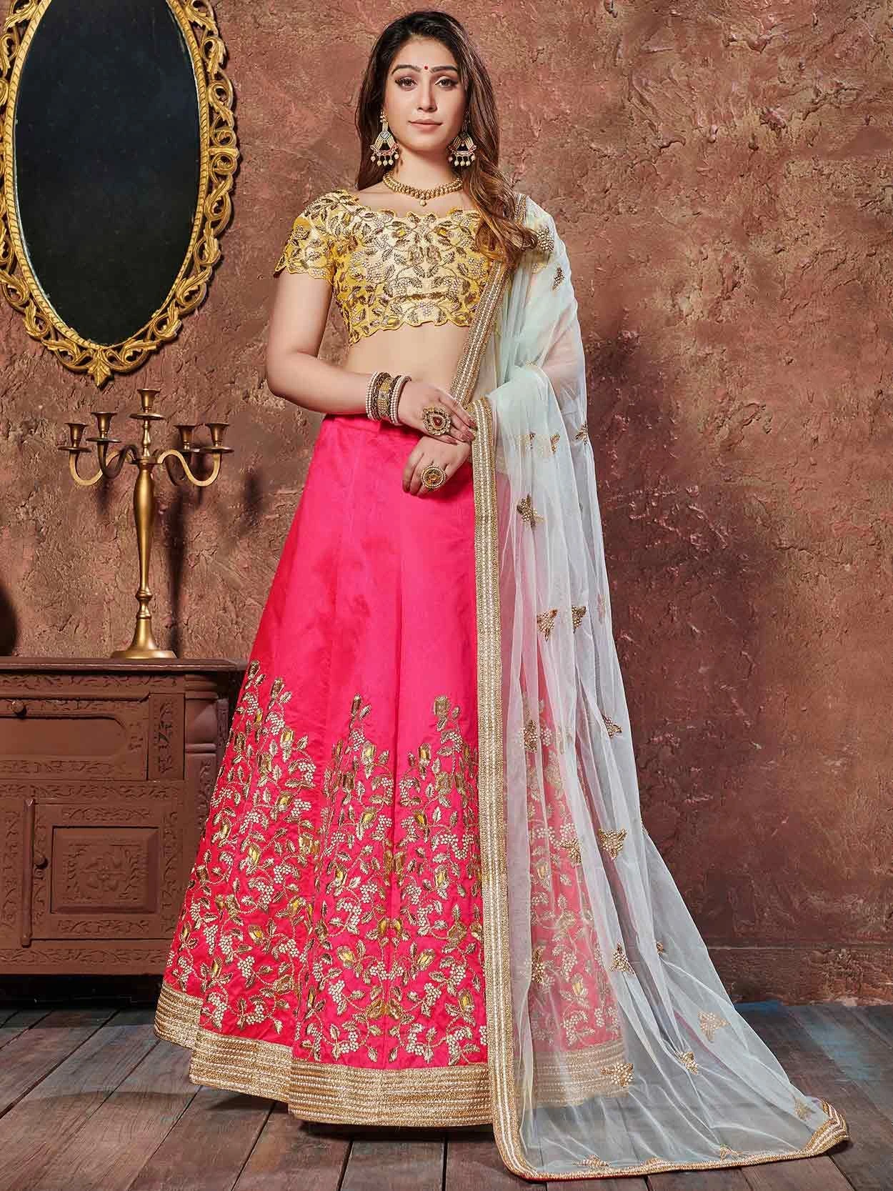 Women’s Pink Colour Silk Fabric Attractive Lehenga Choli In Wedding Look This attire is nicely made with Lace,Zari,Thread,Sequin work.