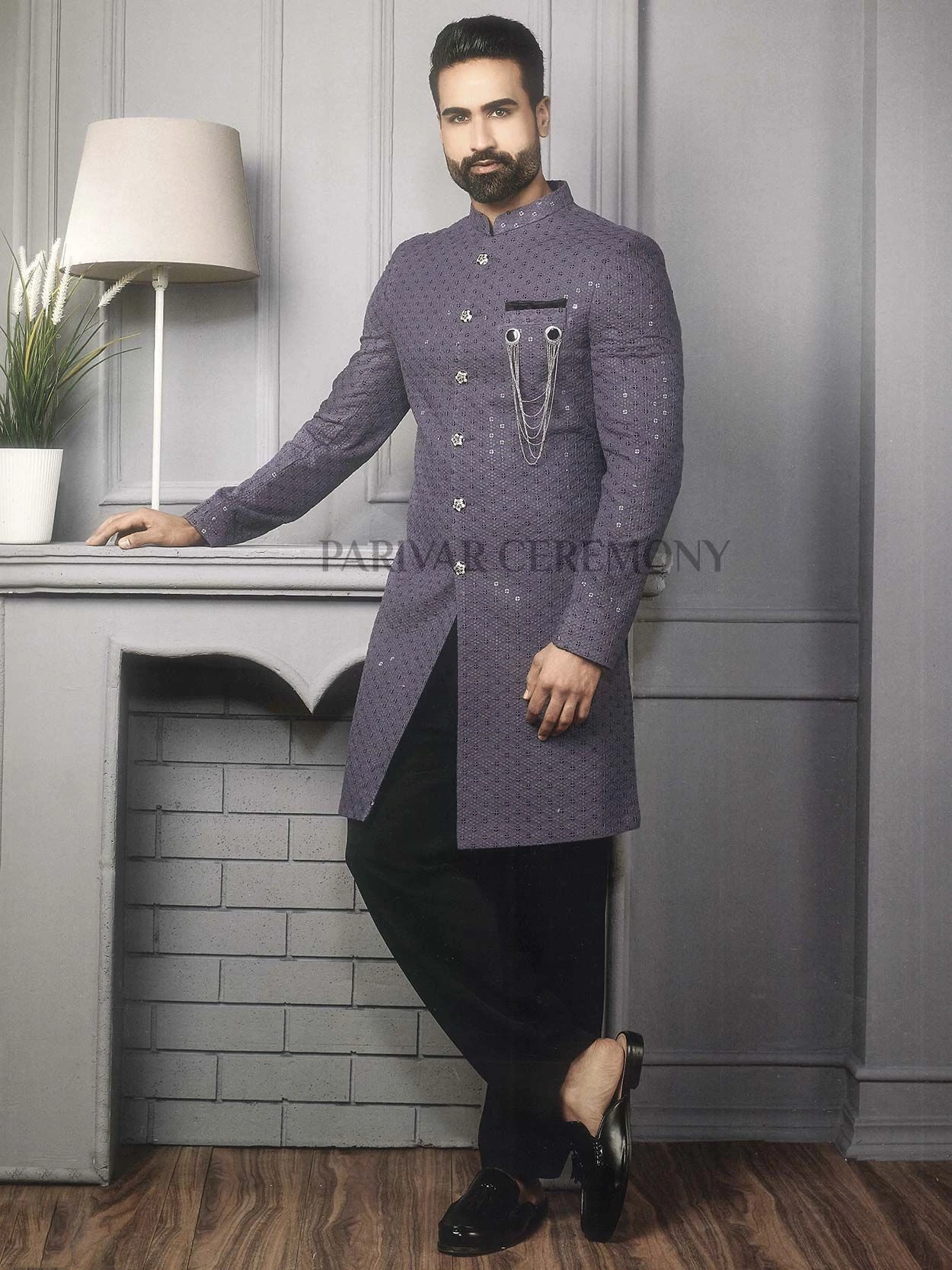 Be Your Unique Trend This Purple Colour Imported Fabric Men`S Indowestern With Thread,Sequin Work.
