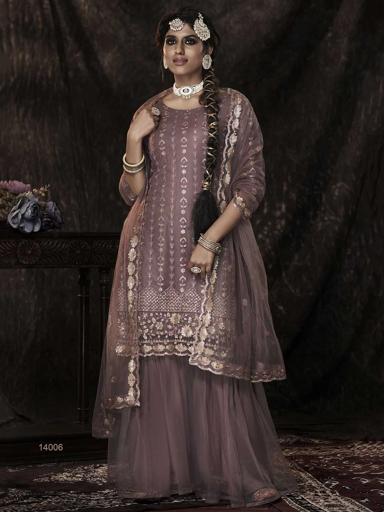 Purple Colour Net Fabric Amazing Salwar Kameez in Sharara Style The lovely Sequin work a substantial attribute of this attire.
