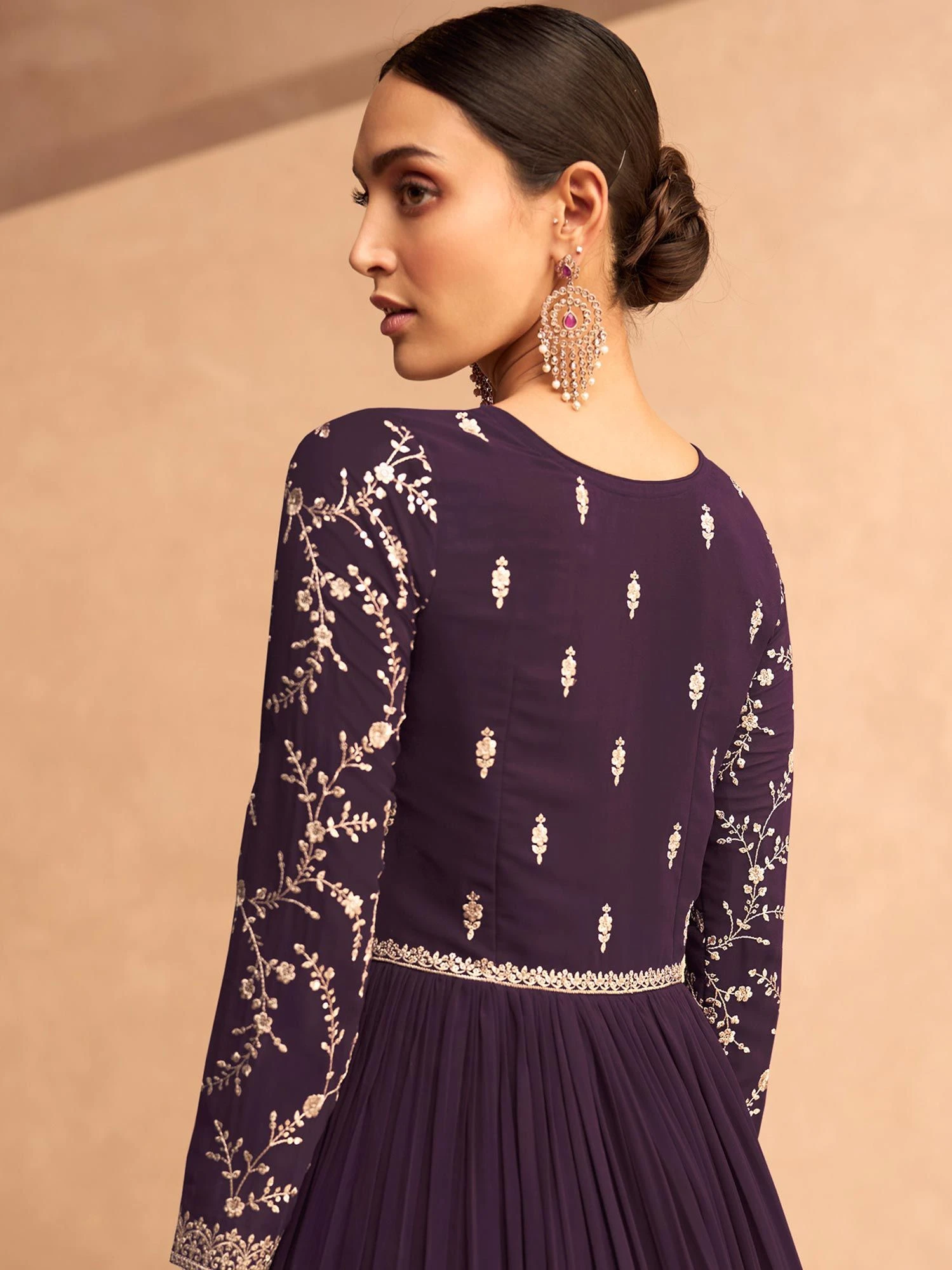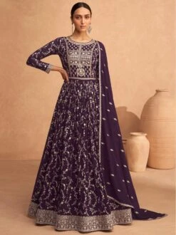 Overwhelm the audience adorning this lilac purple color anarkali kameez in silk. Augmented using sequins and zari work embroidery all over. Available with a purple embroidered dupatta in silk and a matching bottom. Note: Accessories shown are for styling purpose only. Slight color variation may occur due to photographic reasons. The semi-stitched kameez can be customised upto 42 inches.