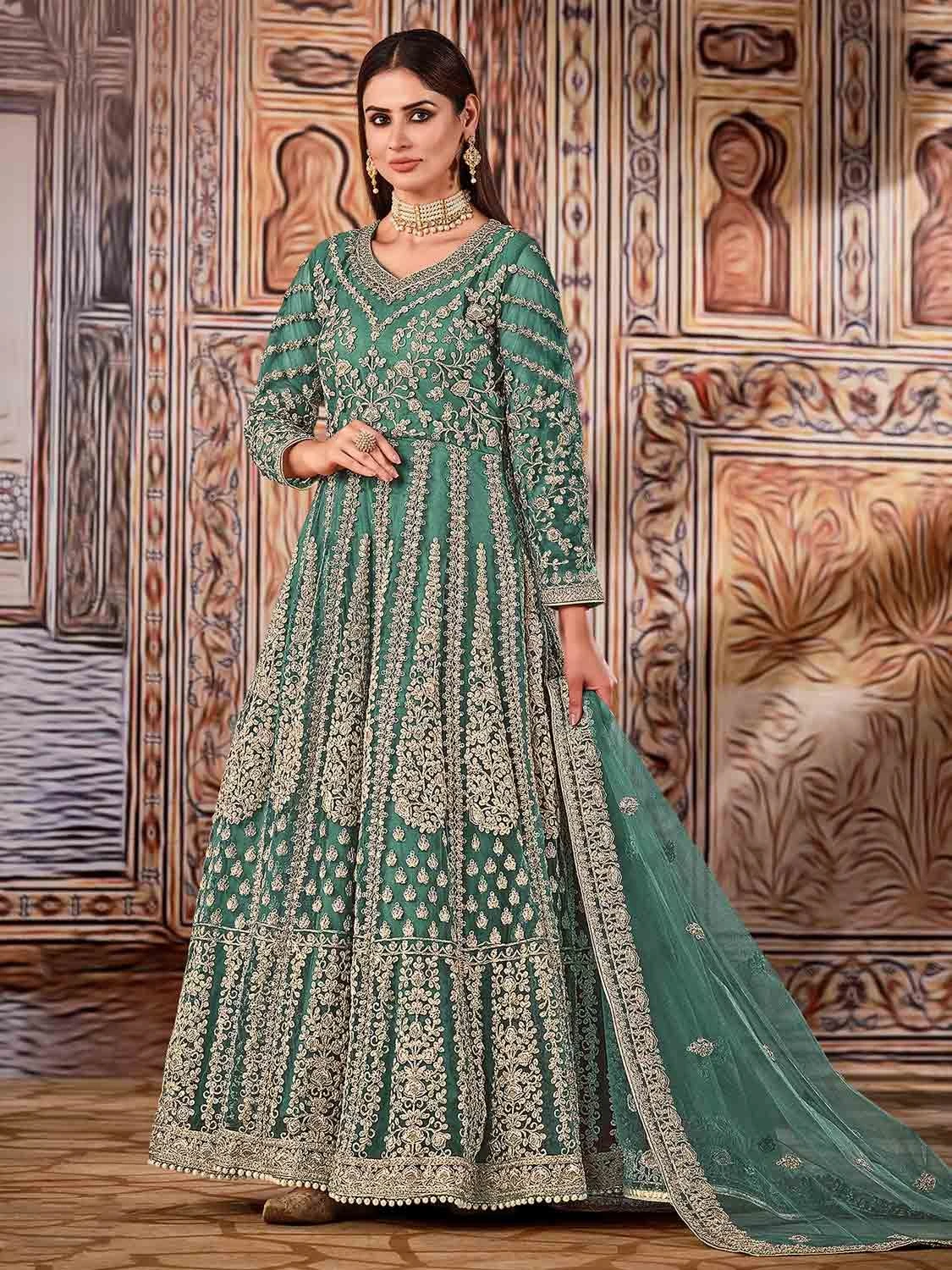 An fantastic Rama Green Colour Net Fabric Unstitched Salwar Kameez will make you look quite stylish and graceful. The lovely Zari,Zardozi,Moti Work work a substantial attribute of this attire.