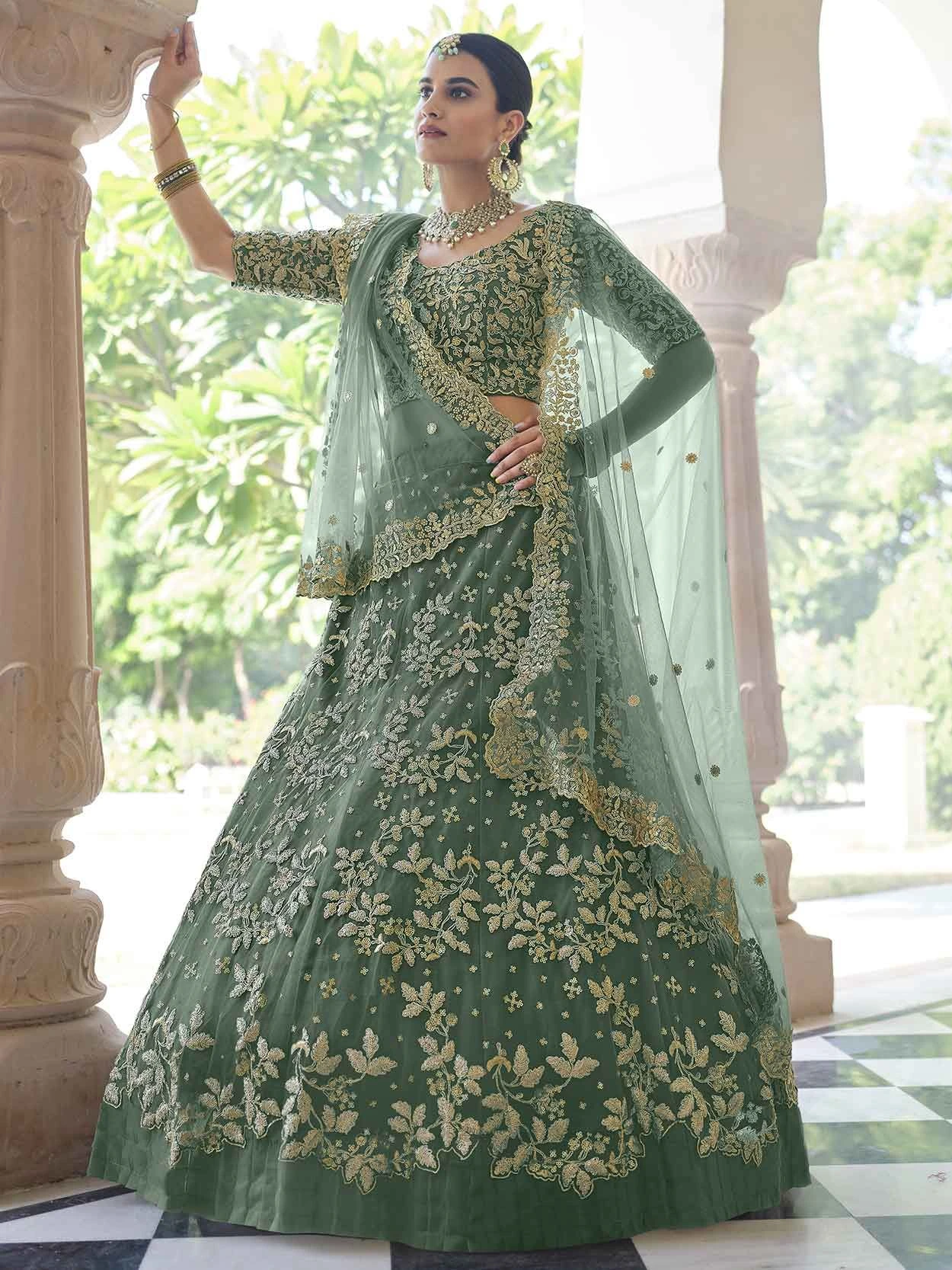 Rama Green Colour Net Fabric Astounding A Line Lehenga Choli In Engagement Look This attire is nicely made with Zari,Thread,Sequin work.