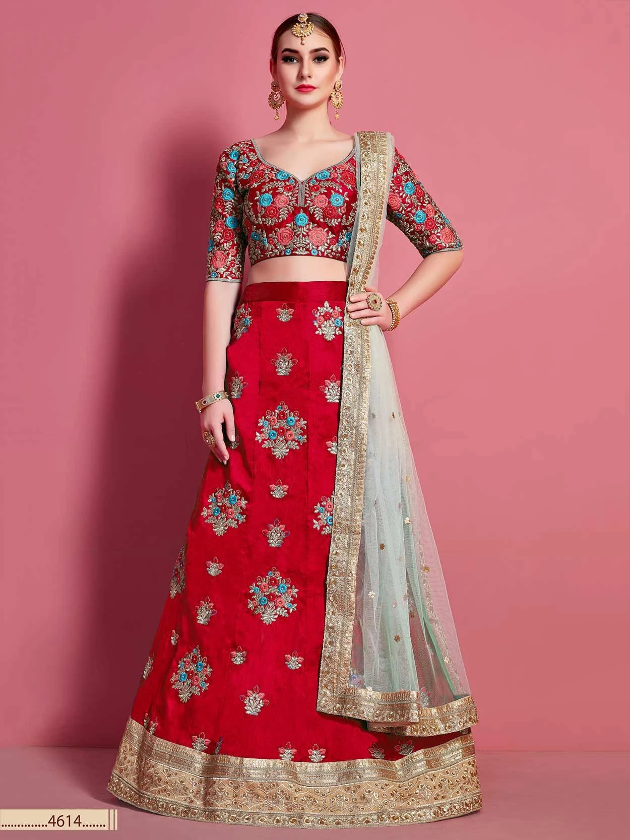 Appealing A Line Lehenga Choli in Red Colour Art Silk Fabric In Traditional Look This attire is nicely made with Embroidered work.