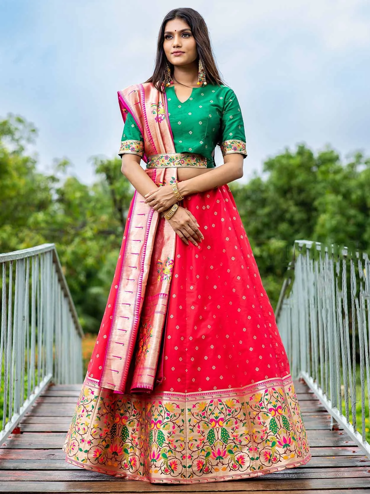 Red Colour Silk Fabric Wonderful Unstitched Lehenga Choli This attire is nicely made with Zari,Weaving work.