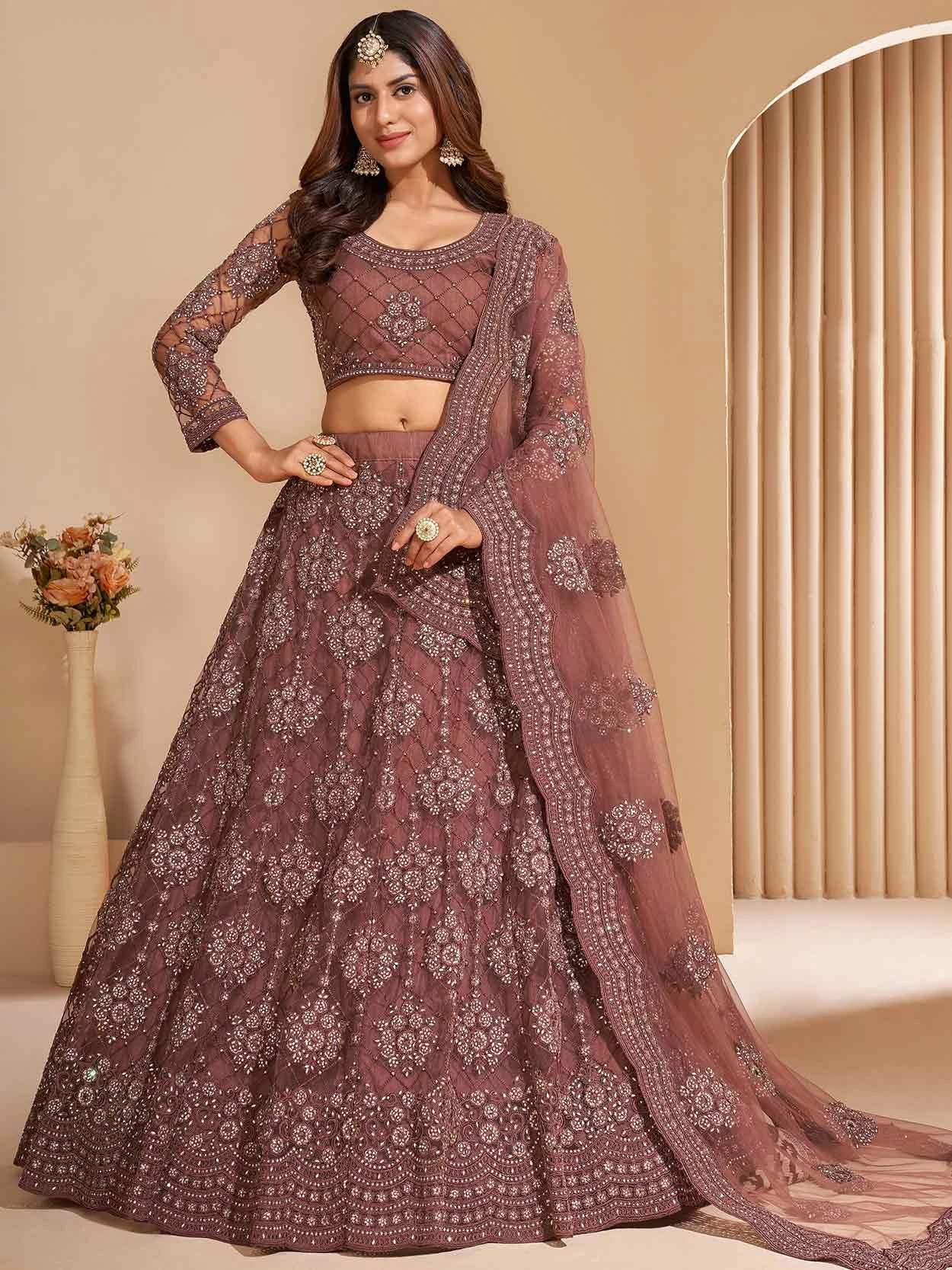 You’re bound to make a strong style statement with this Rust Colour Net,Silk Fabric Unstitched Salwar Kameez. The lovely Embroidery,Stone,Hand work a substantial attribute of this attire.