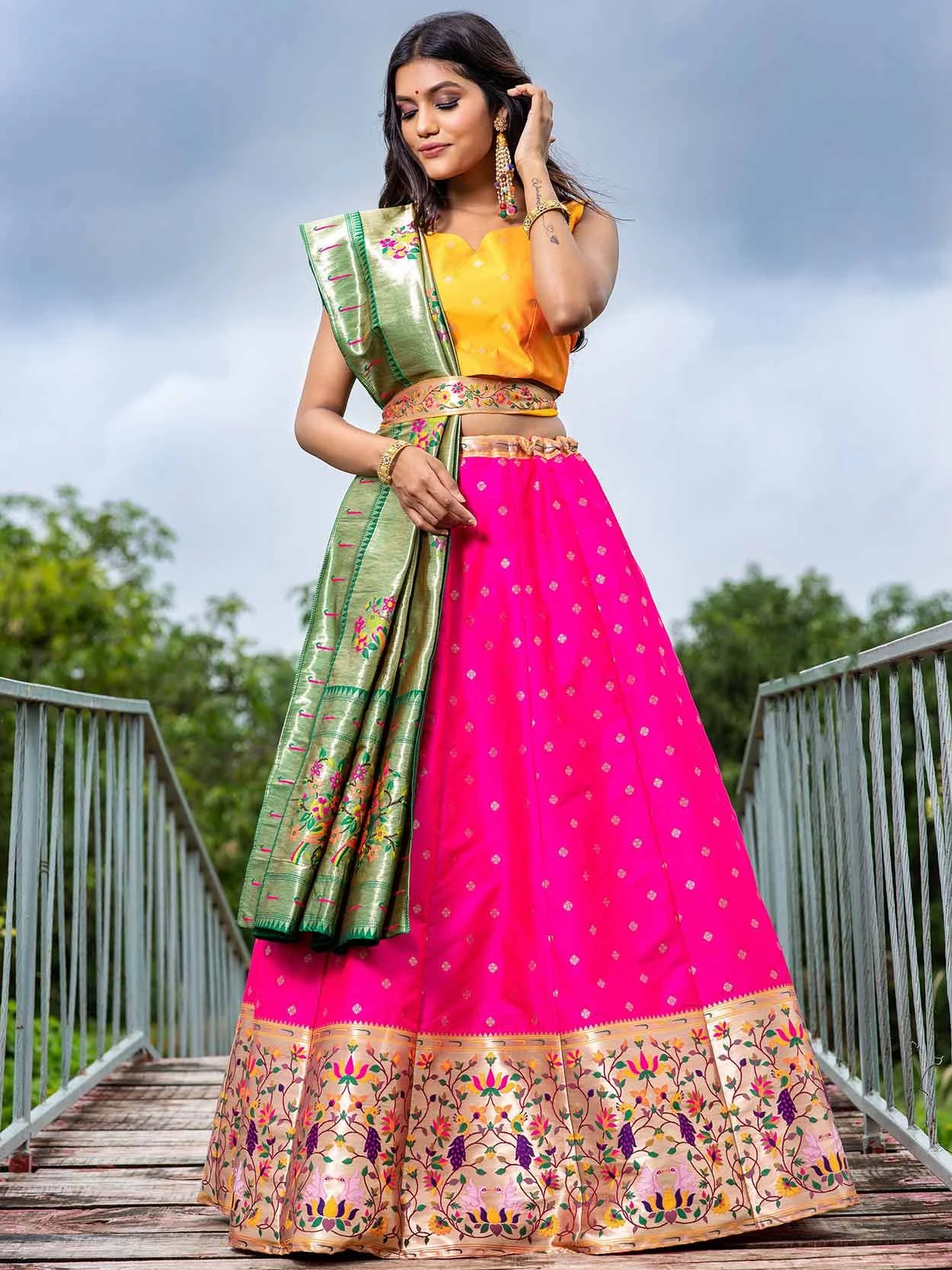Women’s Pink Colour Silk Fabric Striking Lehenga Choli This attire is nicely made with Zari,Weaving Work work.