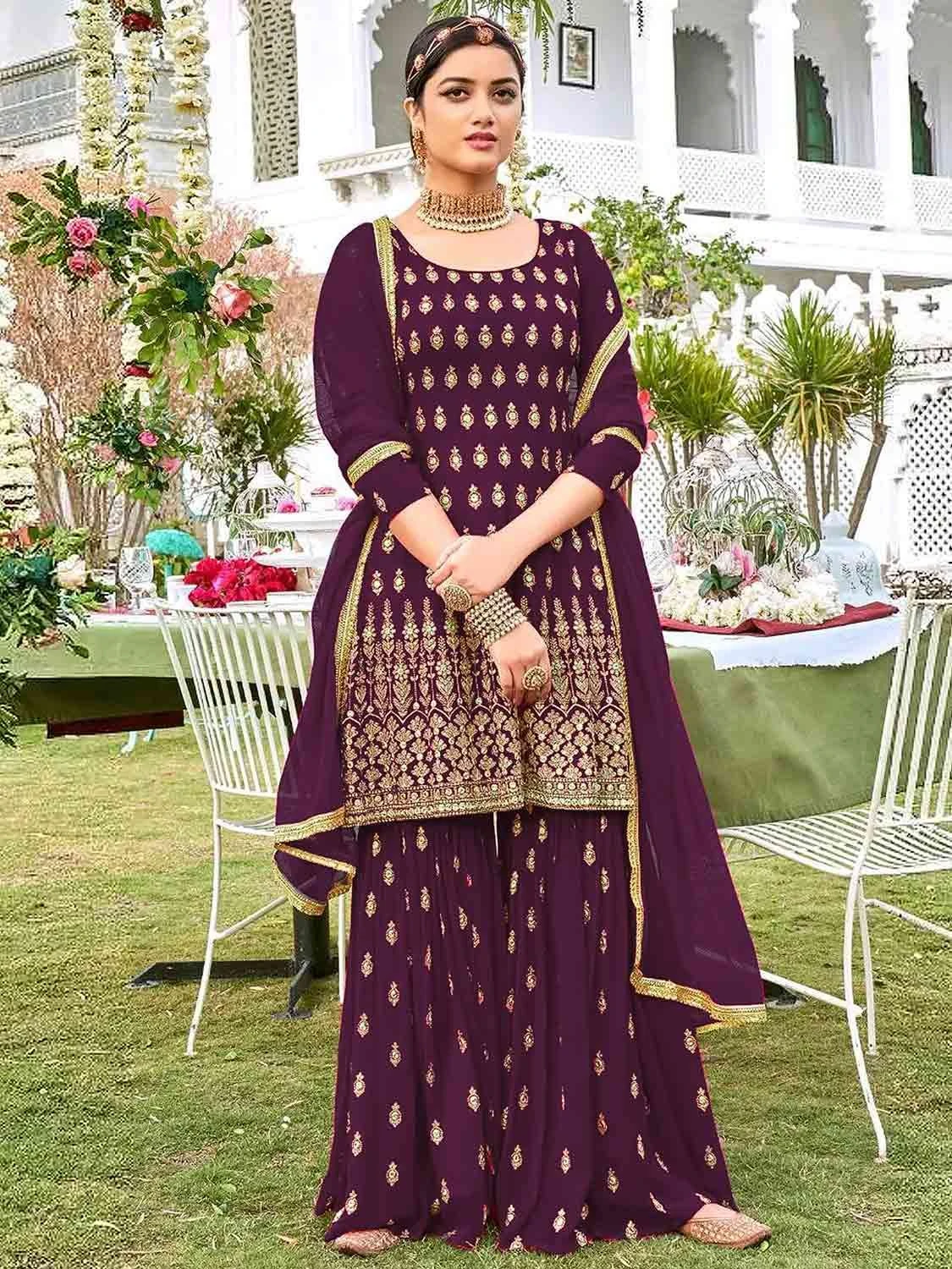 An remarkable Wine Colour Georgette Fabric Unstitched Salwar Kameez will make you look highly stylish and graceful. The lovely Lace,Zari work a substantial attribute of this attire.