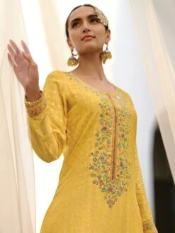 Yellow Pakistani Style Silk Salwar Suit With Palazzo Style